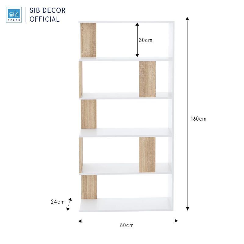 ✨Kệ Gỗ Để Sách Phá Cách Hiện Đại Màu Trắng Phối Vân Gỗ Sồi SIB Decor KSG52