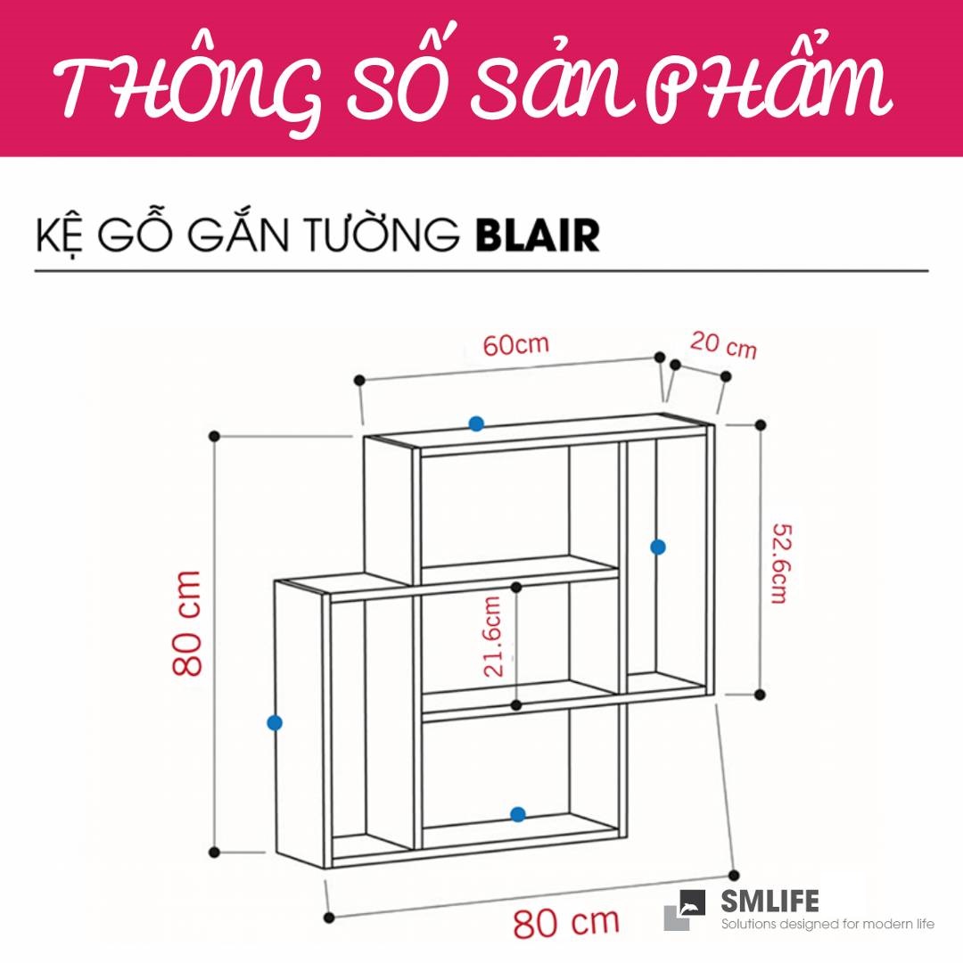 Mang đậm phong cách nội thất đơn giản, kệ gỗ trang trí gắn tường Blair là một sự bổ sung hoàn hảo cho căn hộ hay văn phòng của bạn. Kệ gỗ Blair được thiết kế theo phong cách đơn giản, hiện đại giúp bạn thoải mái trang trí sách hay các vật dụng trang trí an toàn. Sử dụng vật liệu ván ép công nghiệp MDF chống ẩm phủ Melamine cao cấp giúp kệ gỗ trang trí SMLIFE có độ bền cao, chống trầy và chống ẩm rất tốt. Bạn có thể tự lắp đặt sản phẩm dễ dàng với các phụ kiện và hướng dẫn đi kèm.