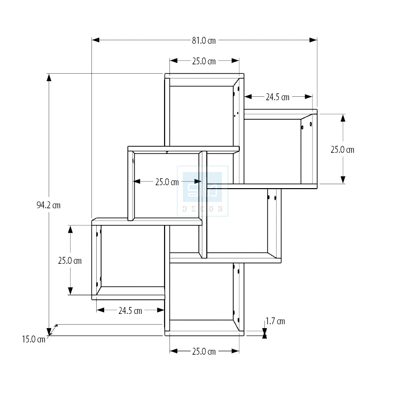 - Kích thước: 81 x 15 x 94.2cm (Dài x Rộng x Cao)
