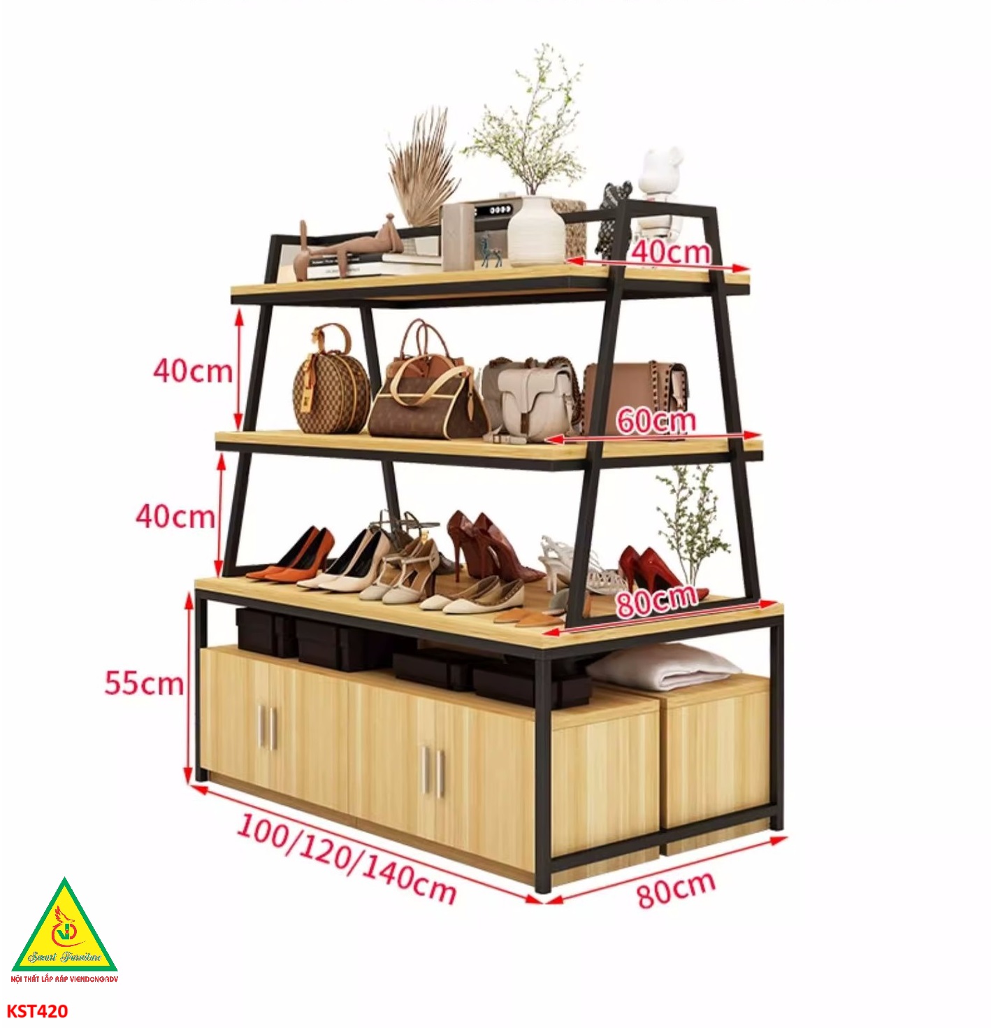✨Kệ gỗ trưng bày rau củ quả, kệ trưng bày sản phẩm, hàng hóa KST420 - NỘI THẤT LẮP RÁP VIENDONGADV