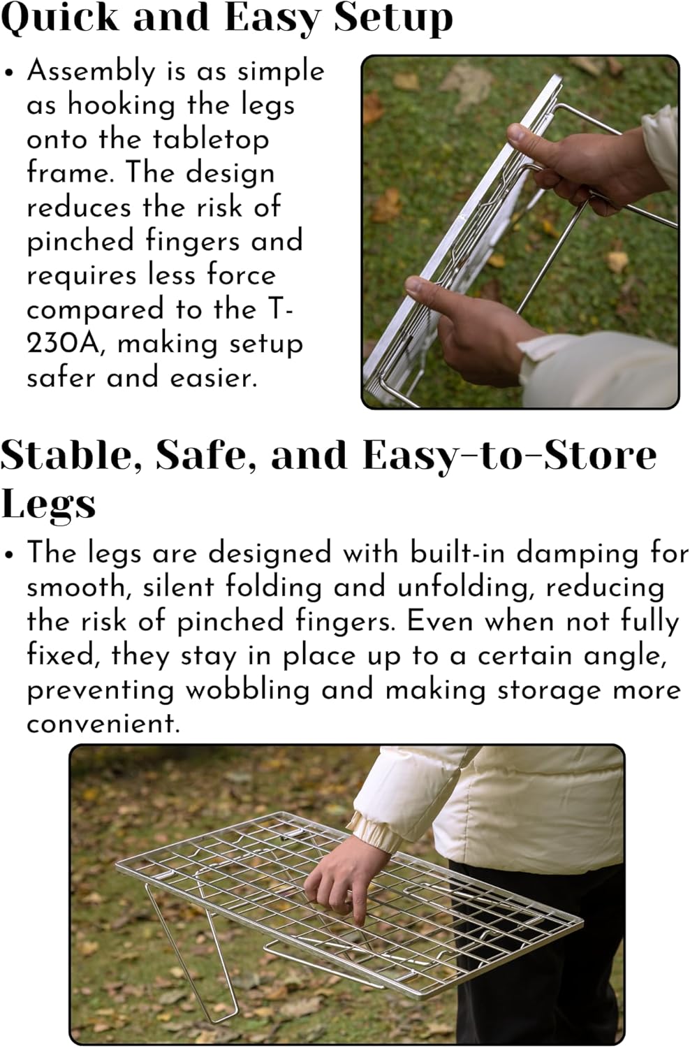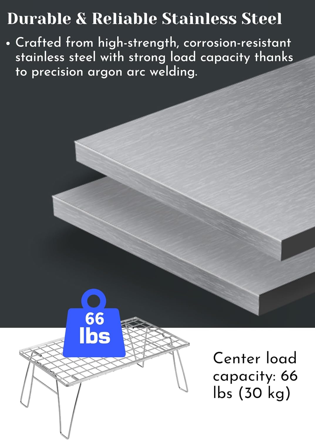 - Chịu tải: Khoảng 66,1 lbs (30 kg) nhưng vui lòng không sử dụng bếp củi hoặc nồi bằng gang. Vui lòng sử dụng sản phẩm này sau khi quan sát tải trọng tối đa.) 【Cấu trúc gấp gọn nhỏ gọn】Gấp gọn chỉ còn khoảng 2,5 cm, tiết kiệm không gian trong xe hơi hoặc nhà ở. 【Tiết kiệm không gian & Di động】Thiết kế mỏng cho phép cất giữ hiệu quả và giảm thiểu việc chiếm dụng cốp xe. 【Khuyến nghị xếp chồng an toàn】Hoặc sử dụng nhiều tầng, nên dùng đai cố định do khung mỏng.