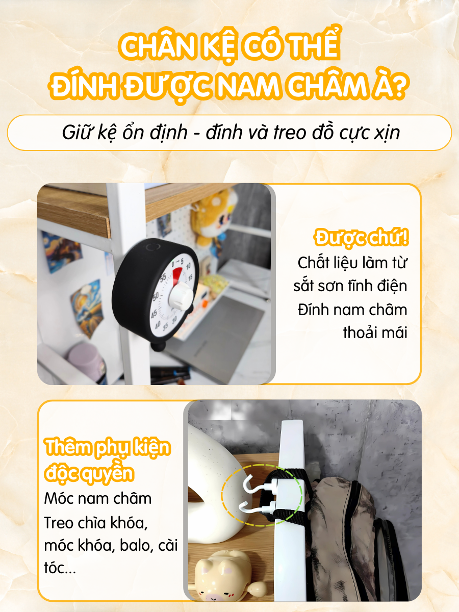 - Treo phụ kiện, tai nghe, hộp bút, ảnh decor cực tiện