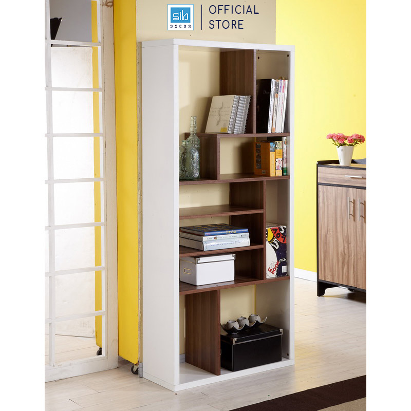 ✨Kệ Sách Gỗ Nhiều Ngăn Màu Trắng Phối Walnut Đẹp Tinh Tế, Hiện Đại SIB Decor KS021