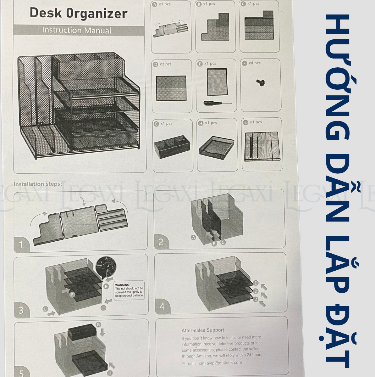 Hướng dẫn lắp ghép giá tài liệu 3 ngăn kèm khay để bút Deli Z00112