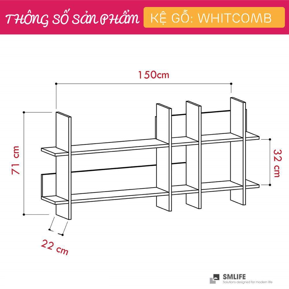 Mua tại TiktokMang đậm phong cách nội thất đơn giản, kệ gỗ trang trí gắn tường hiện đại SMLIFE Whitcomb là một sự bổ sung hoàn hảo cho căn hộ hay văn phòng của bạn. Kệ gỗ Whitcomb được thiết kế theo phong cách đơn giản, hiện đại giúp bạn thoải mái trang trí sách hay các vật dụng trang trí an toàn. Sử dụng vật liệu ván ép công nghiệp MDF chống ẩm phủ Melamine cao cấp giúp kệ gỗ trang trí SMLIFE có độ bền cao, chống trầy và chống ẩm rất tốt. Bạn có thể tự lắp đặt sản phẩm dễ dàng với các phụ kiện và hướng dẫn đi kèm.