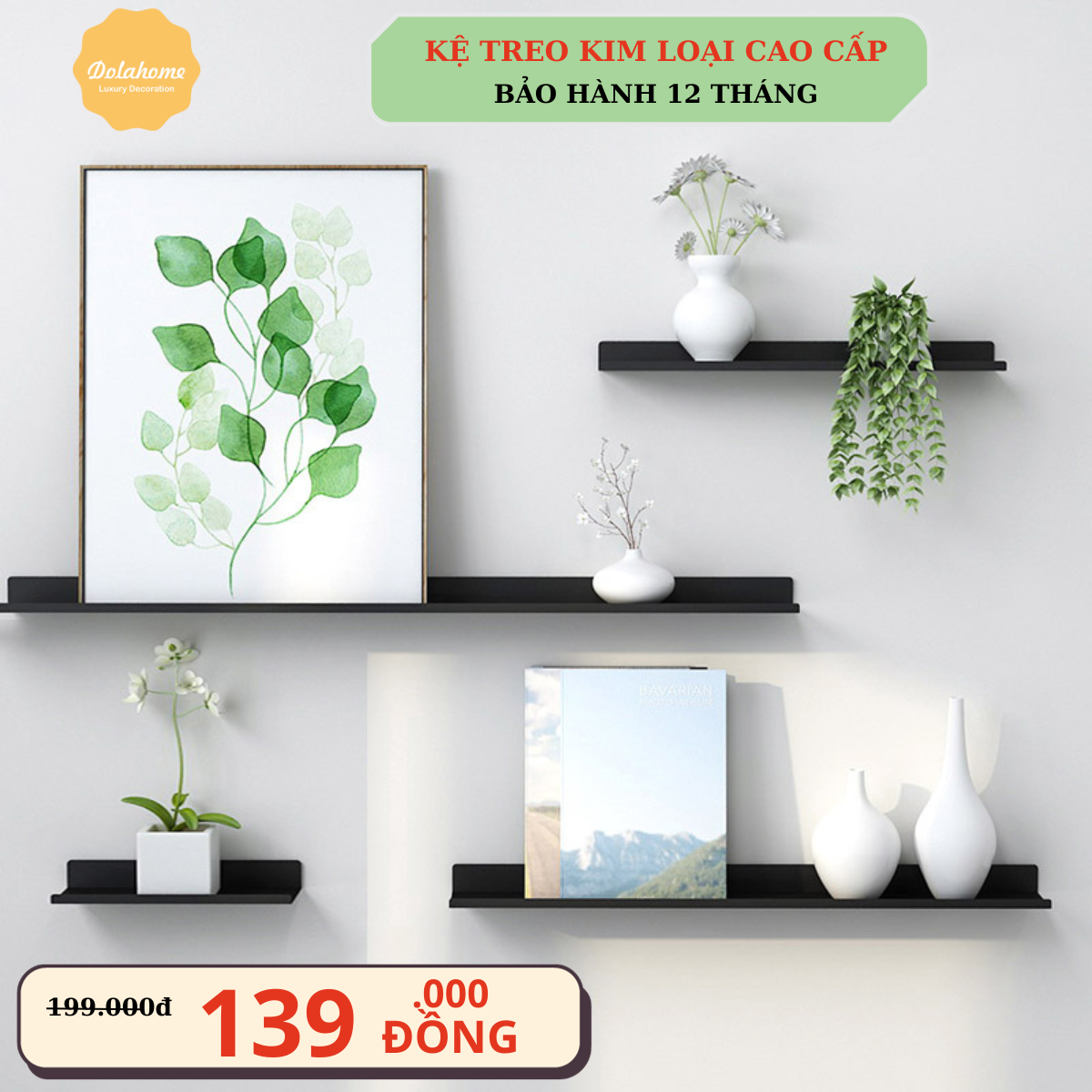 Kệ treo tường sắt sơn tĩnh điện cao cấp Dola Home.Kệ để đồ tiện dụng,kệ decor trang trí nhà cửa, phòng khách