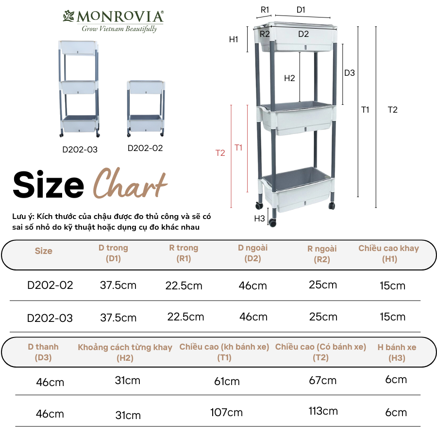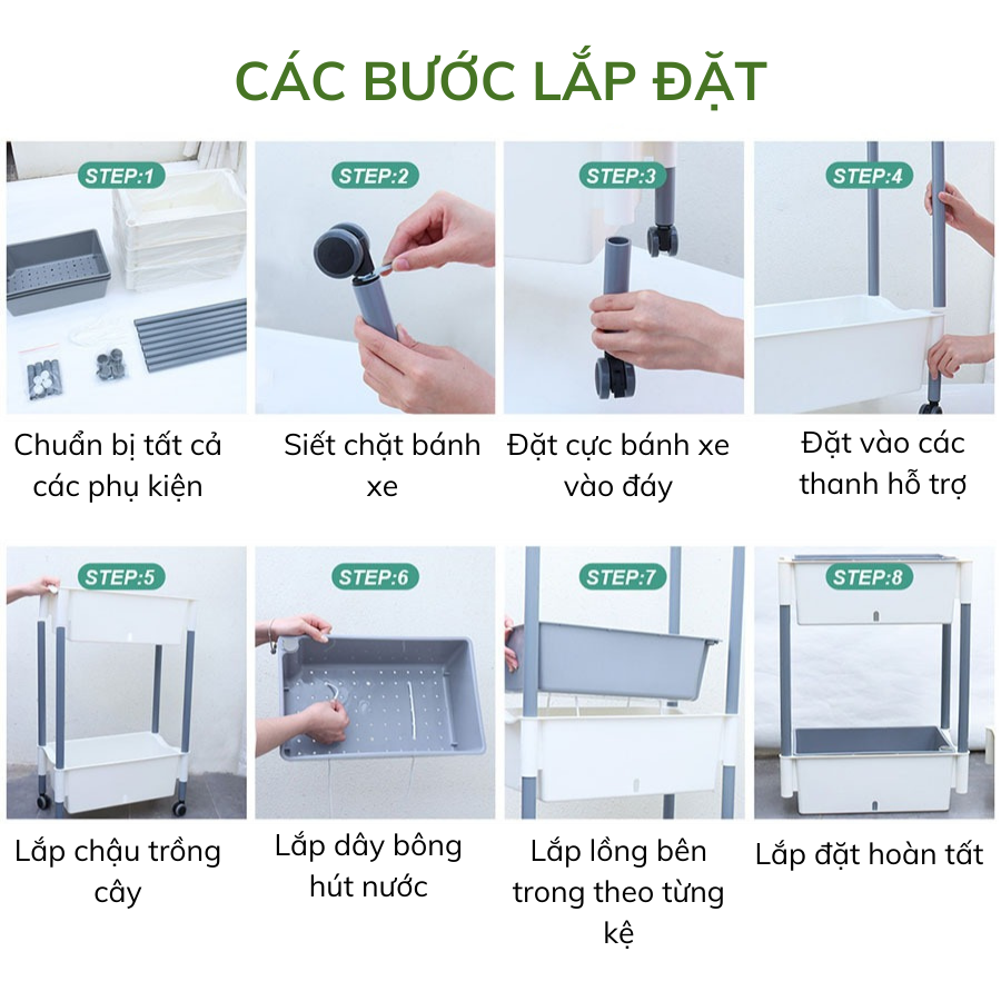 ✨Kệ trồng rau tự tưới D202 MONROVIA cho rau, hoa, có bánh xe di chuyển thuận lợi