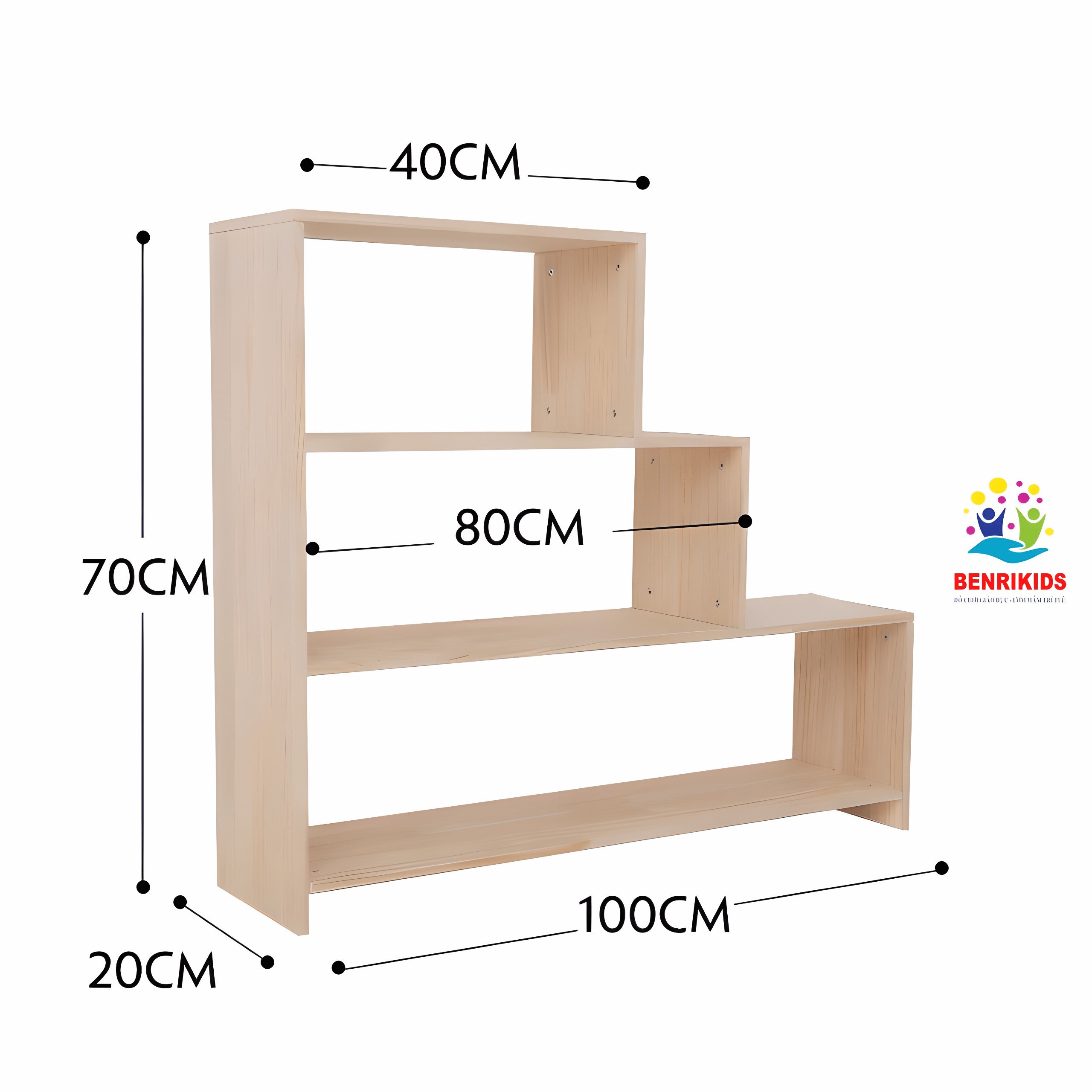 KỆ SÁCH ĐƯỢC SẢN XUẤT TRỰC TIẾP TẠI XƯỞNG BENRIKIDS-QUÝ ĐỐI TÁC THẦY CÔ TRƯỜNG MẦM NON MUỐN LÀM Kệ được chế tạo từ gỗ thông nhập khẩu trơn mịn an toàn không như gỗ