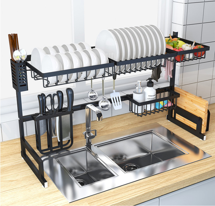 Kệ gác bồn rửa chán có thiết kế đặc biệt, thông minh và tiện dụng, có thể thay đổi kích thước chiều dài nên phù hợp với hầu hết các loại bồn rửa: Kích thước