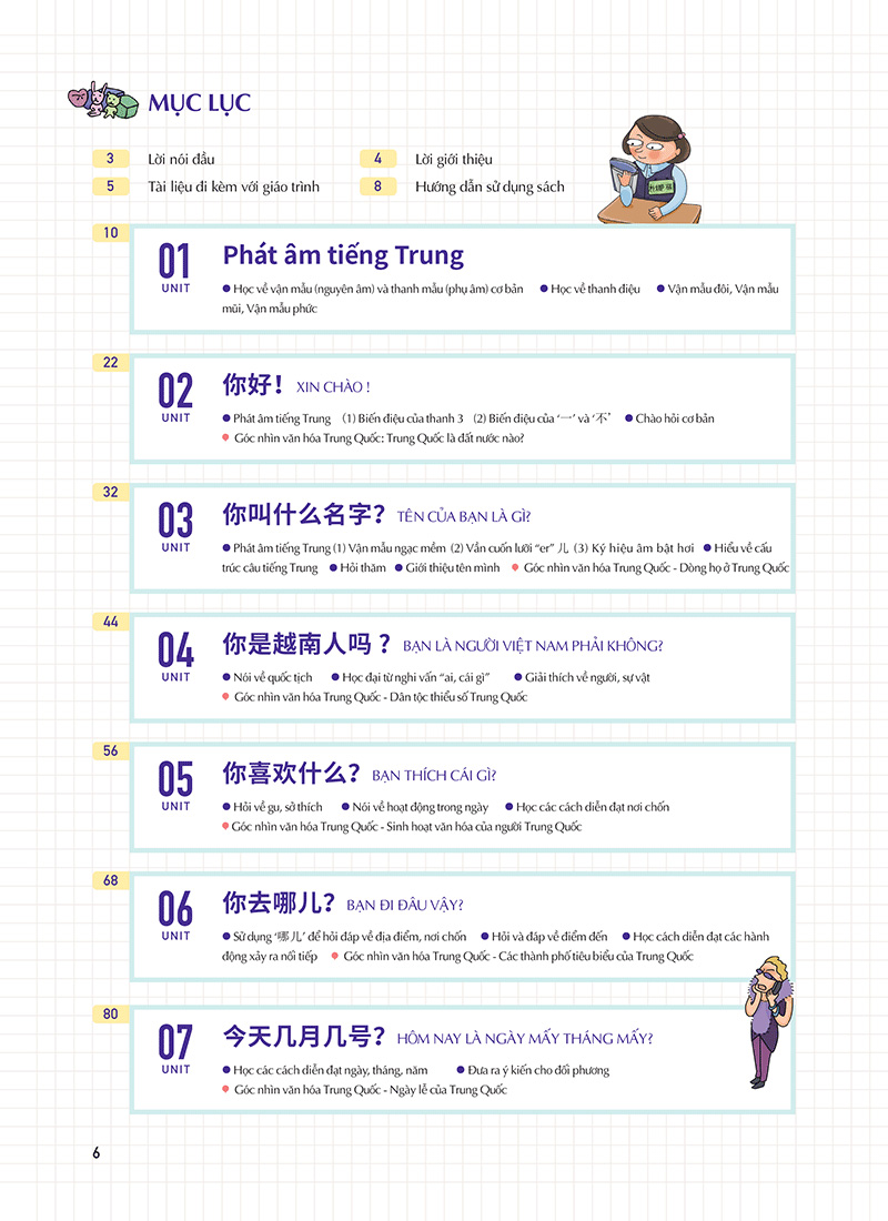 15 bài học được hiệu đính tỉ mỉ, hoàn toàn khác biệt với những giáo trình tiếng Trung nặng nề khô khan khác.