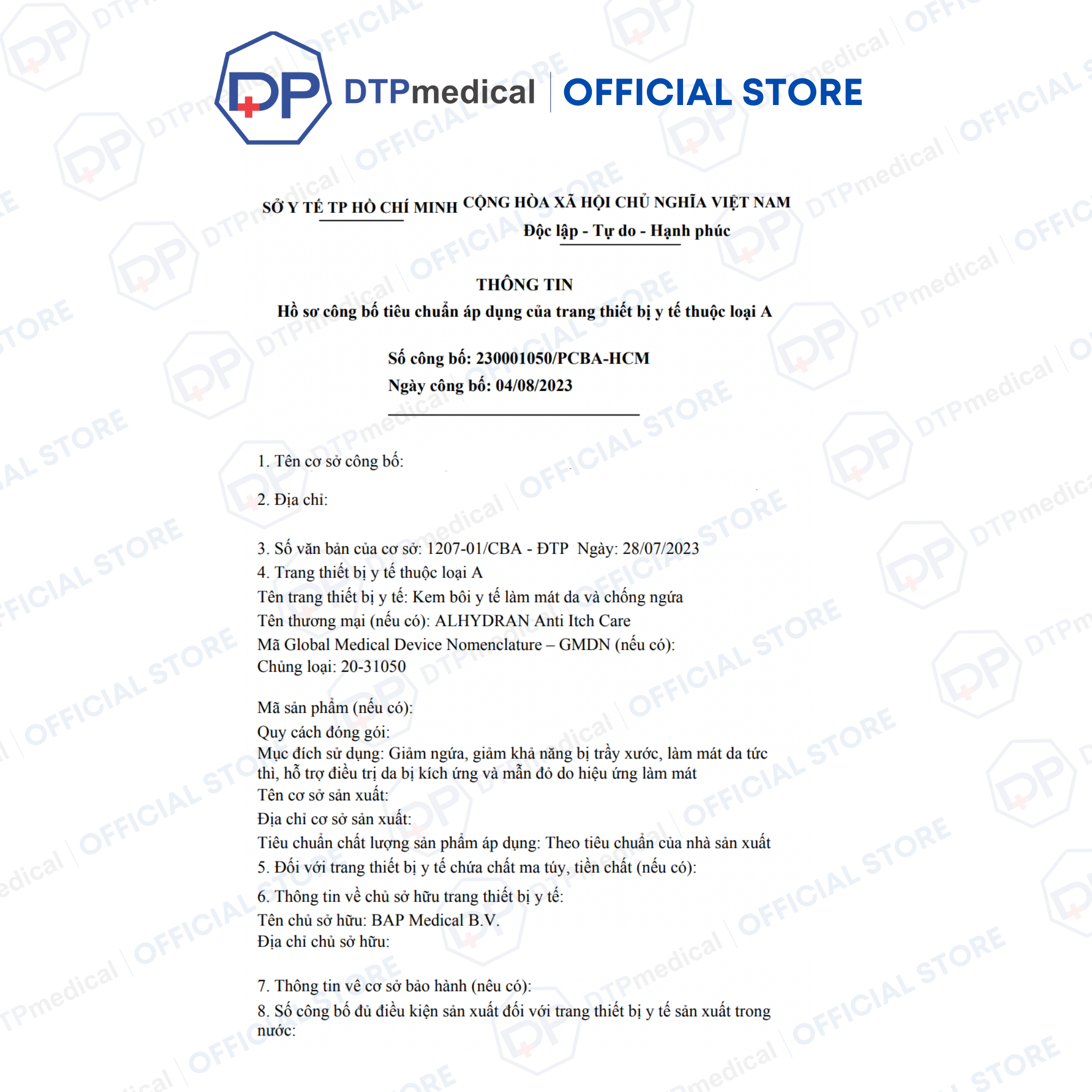 - ALHYDRAN Anti Itch Care được thiết kế đặc biệt để giảm ngứa. BAP MEDICAL sử dụng công thức đã được khoa học chứng minh của ALHYDRAN làm cơ sở. ALHYDRAN Anti Itch Care kết hợp các đặc tính độc đáo của gel Aloe Vera với các thành phần hiệu quả khác.