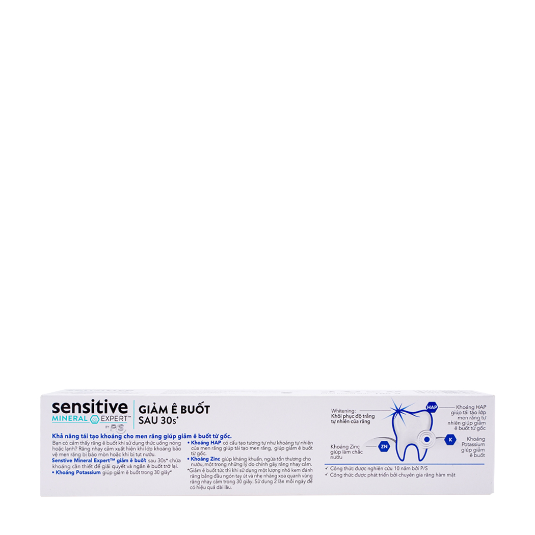 - Hiệu quả hoạt động của các siêu phân tử hydroxyapatite trong việc tái tạo và tăng cường men răng. - Thành phần potassium nitrate giúp xoa dịu tình trạng răng ê buốt. - Hương