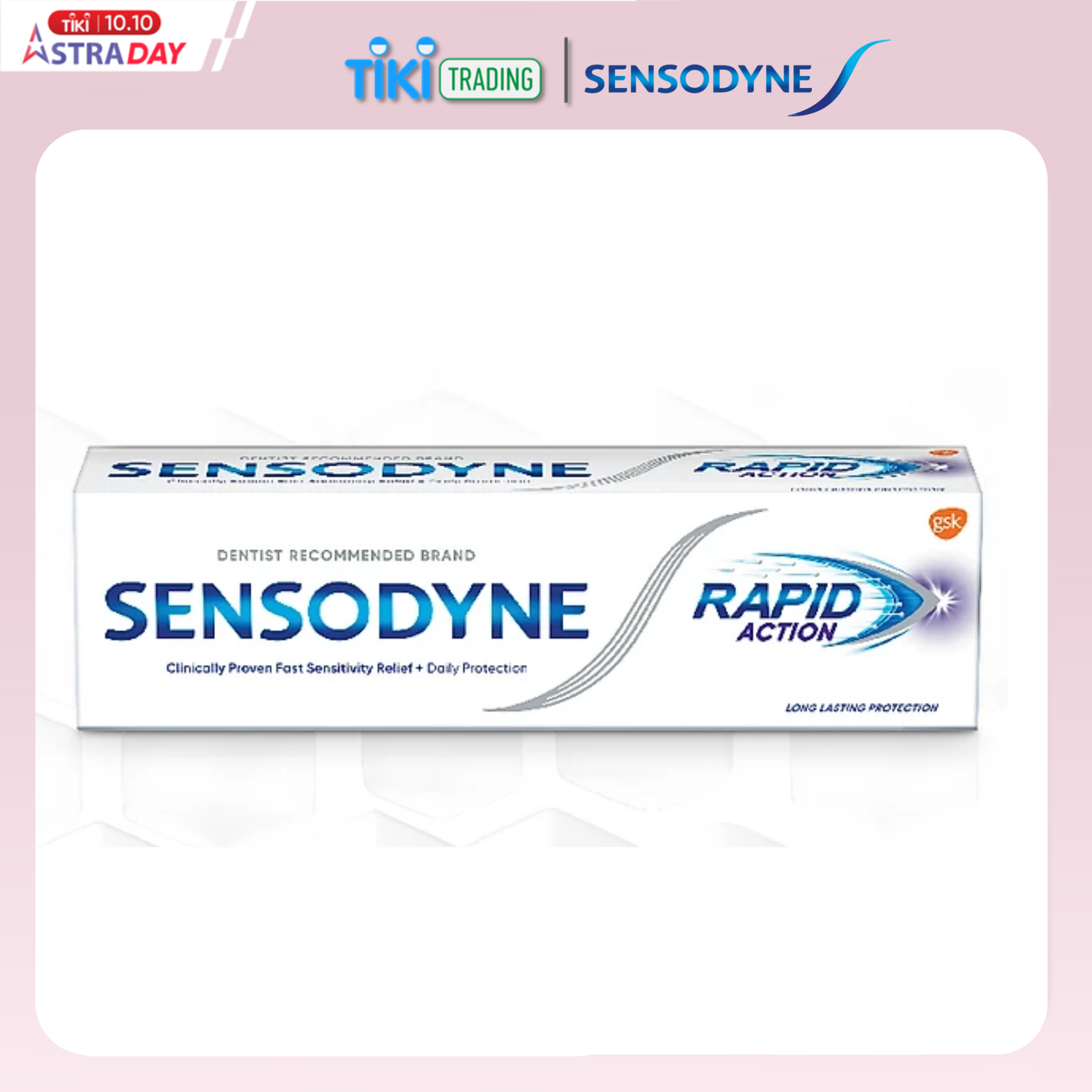 Mua tại TiktokKem đánh răng Sensodyne Rapid Action tác động nhanh chóng để tạo ra 1 chất phủ trên bề mặt men răng và trong các ống ngà răng – nhanh chóng bịt kín ống ngà bị lộ, giúp ngăn chặn các tác nhân gây kích thích dây thần kinh trong răng, từ đó giảm nhanh ê buốt răng Giúp giảm ê buốt răng & ngăn ngừa ê buốt quay trở lại (khi sử dụng ít nhất 2 lần nhưng không quá 3 lần/ngày). Giúp làm sạch răng miệng, Ngừa sâu răng. Mang lại cảm giác sạch sẽ và thơm mát. Thông tin sản phẩm Thành phần: Glycerin, PEG-8, Hydrated Silica, Pentasodium Triphosphate, Aroma, Sodium Lauryl Sulfate, Titanium Dioxide, Carbomer, Sodium Saccharin, Stannous Fluoride, Cocamidopropyl Betaine, Sodium Fluoride Cách dùng: