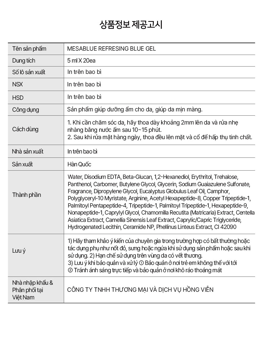 ✨Kem Dưỡng Ẩm Mặt MESABLUE REFRESING BLUE GEL 5ml x 20ea