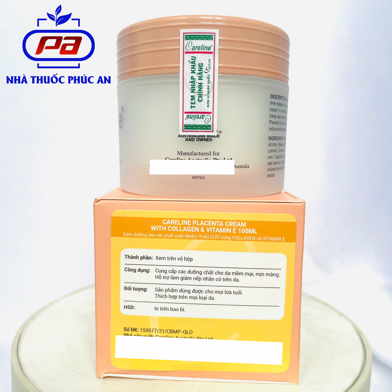 Kem dưỡng ẩm nhau thai cừu Careline Placenta Cream 100ml giúp da mịn giảm nếp nhăn chống lão hoá THÀNH PHẦN: Water, Mineral Oil, Petrolatum, Cetearyl Alcohol, Stearic Acid, Propylene Glycol, Grape Seed Oil (Tinh dầu hạt nho), Ceteth-10, Lanolin, Carbomer, Tocopheryl Acetate (Vitamin E), Avocado Oil, Jojoba Seed Oil, Hydrolysed Collagen, Hydrolysed Placental Protein, Aloe Barbedensis Leaf Extract, Caprylic/Capric Triglyceries, Diazolidinyl Urea, Dimethicone, Glyceryl Stearate. CÔNG DỤNG: