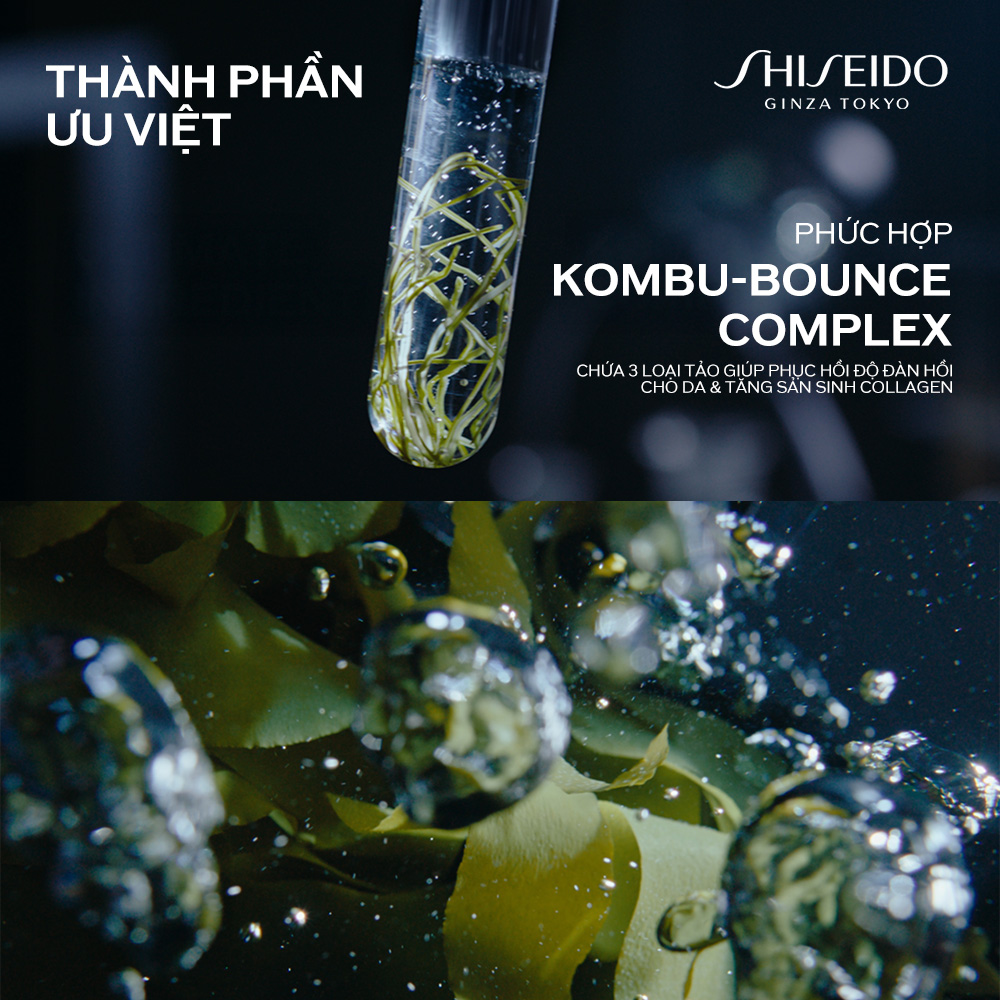 - Phức hợp KOMBU-Bounce: Công thức với tảo xanh, tảo nâu và tảo đỏ giúp giải quyết các nguyên nhân hình thành nếp nhăn