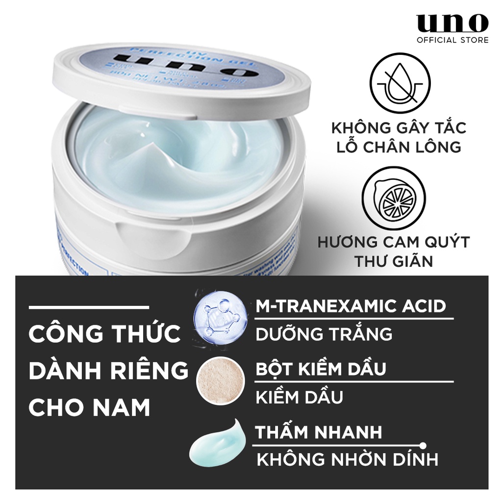 - Kem dưỡng ẩm là một sản phẩm tiện lợi và cần thiết cho làn da của cả nam lẫn nữ, giúp cấp ẩm, nuôi dưỡng, bảo vệ và giải quyết một số vấn đề của làn da. - Kem Dưỡng Ẩm Kiểm Soát Bã Nhờn Uno Cream Perfection là sản phẩm dành cho nam giới với 5 tác dụng trong 1 sản phẩm, sẽ giúp chăm sóc da toàn diện, đem lại làn da sáng mịn và tươi trẻ sau khi sử dụng. Dưỡng Trắng UNO Kiểm Soát Nhờn 5 Trong 1 UV Perfection 80g