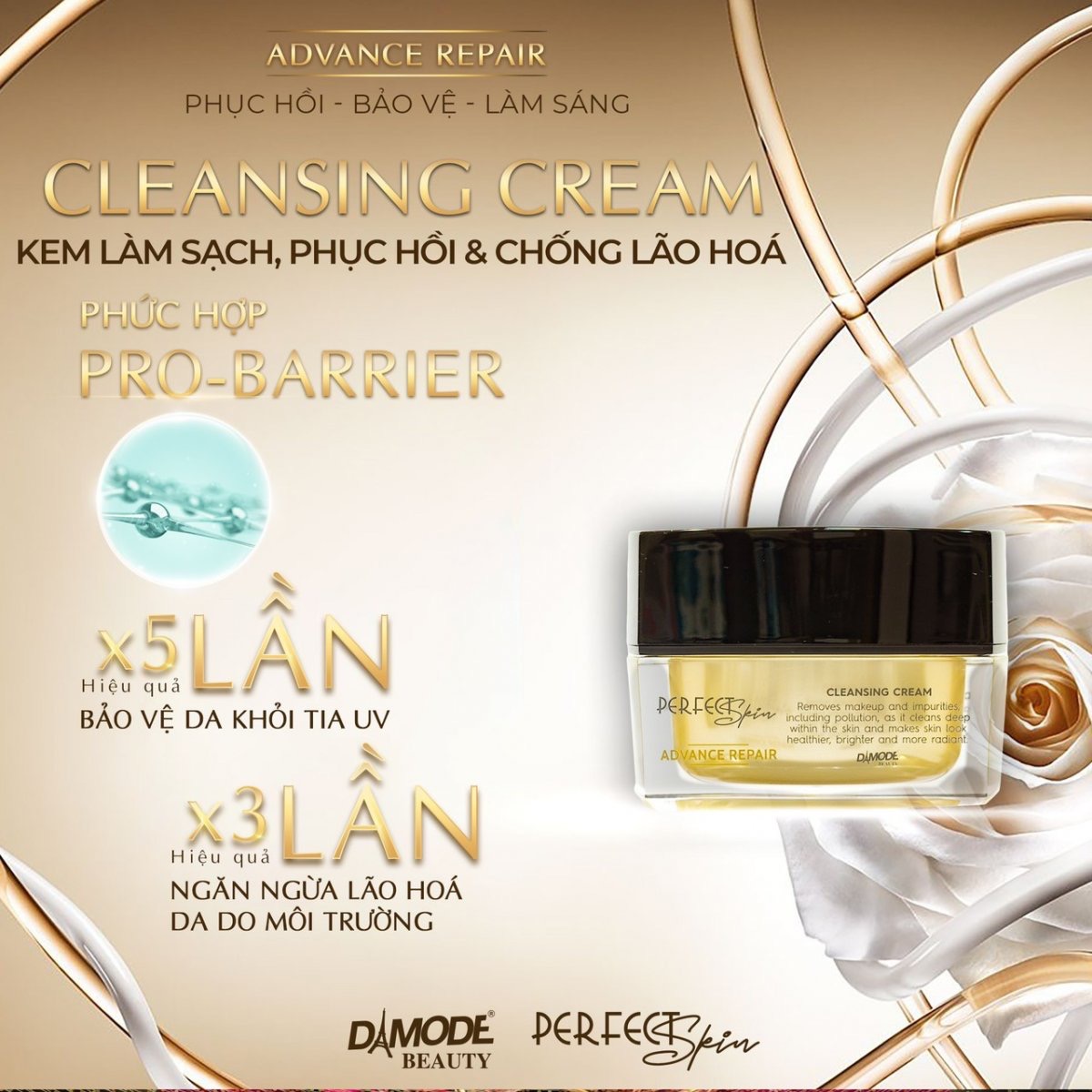 - Công dụng: Kem làm sạch sâu bụi bẩn, bả nhờn, lớp trang điểm, phục hồi hàng rào lipit bảo vệ da, chống lão hoá da. Cleansing Cream là dòng kem làm sạch da đang được đông đảo chị em lựa chọn. Sản phẩm không chỉ hỗ trợ làm sạch da, loại bỏ bụi bẩn và các lớp makeup mà còn chăm sóc và phục hồi làn da hiệu quả. Cùng Damode tìm hiểu chi tiết hơn về dòng sản phẩm này ngay sau đây nhé. Giới thiệu về sản phẩm Cleansing Cream Cleansing Cream là kem tẩy trang làm sạch da quen thuộc đối với các tín đồ chăm sóc sắc đẹp. Sản phẩm được ứng dụng công nghệ độc quyền cùng với các thành phần tự nhiên cho khả năng làm sạch da an toàn và hiệu quả. Hiệu quả bất ngờ từ Cleansing Cream chỉ sau 2 tuần sử dụng Trong các sản phẩm làm sạch da, Cleansing Cream được Damode phân phối rất phổ biến trên thị trường và nhận lại các phản hồi tích cực. Sản phẩm với công thức 20 – 10 – 5 – 3 giúp không chỉ làm sạch mà còn bảo vệ làn da của bạn hiệu quả. Cụ thể: