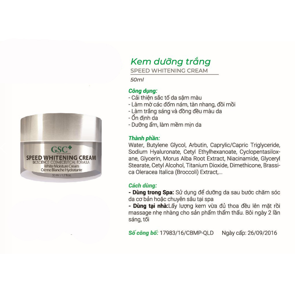 Kem làm trắng nhanh GSC+ SPEED WHITENING CREAM: 50ML