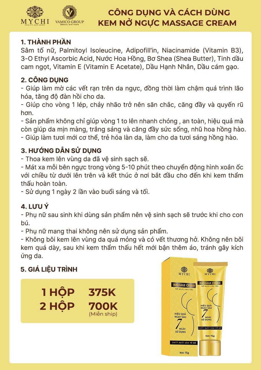 Mua tại TiktokKem Nở Ngực - Massage Cream Mychi - Vamico group