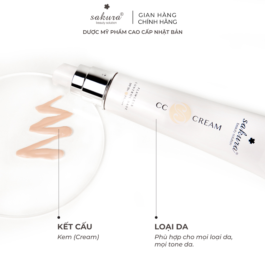 Sakura CC Cream Flawless Control Base - Che phủ nhẹ nhàng, chống nắng vượt trội, sáng đều màu da