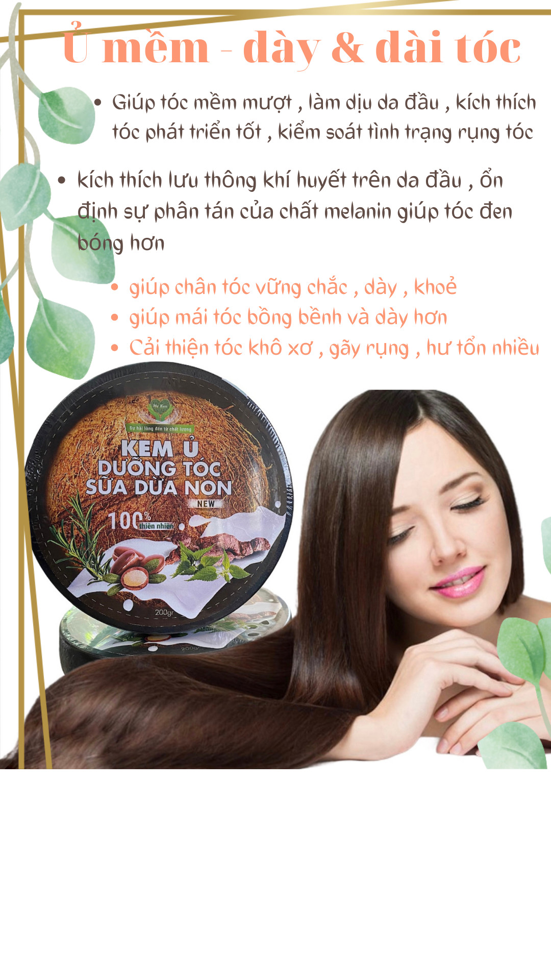 ✨Kem ủ tóc sữa dừa non MẸ KEN (200ml) - kem dưỡng tóc, mềm mượt, giảm khô, chẻ ngọn