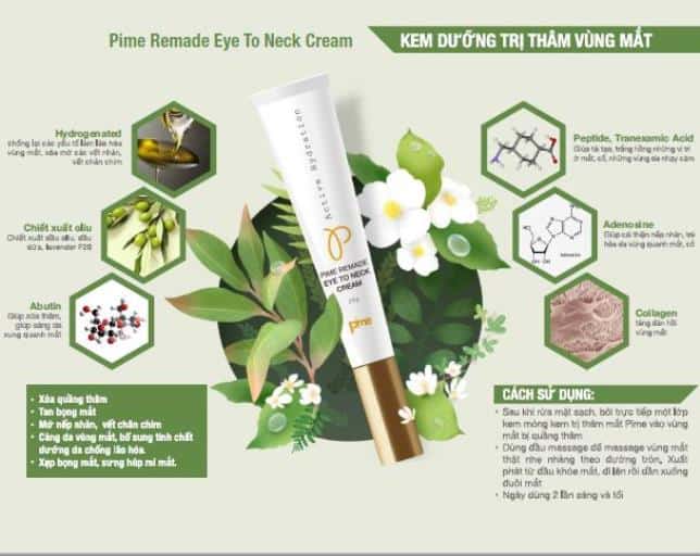 KEM XÓA NHĂN MASSAGE MẮT PIME REMADE 20ML EYE TO NECK CREAM KEM XÓA NHĂN VÙNG MẮT PIME REMADE 20ML ngoài việc cải thiện và ngăn ngừa các nếp nhăn, còn có công dụng giúp tái