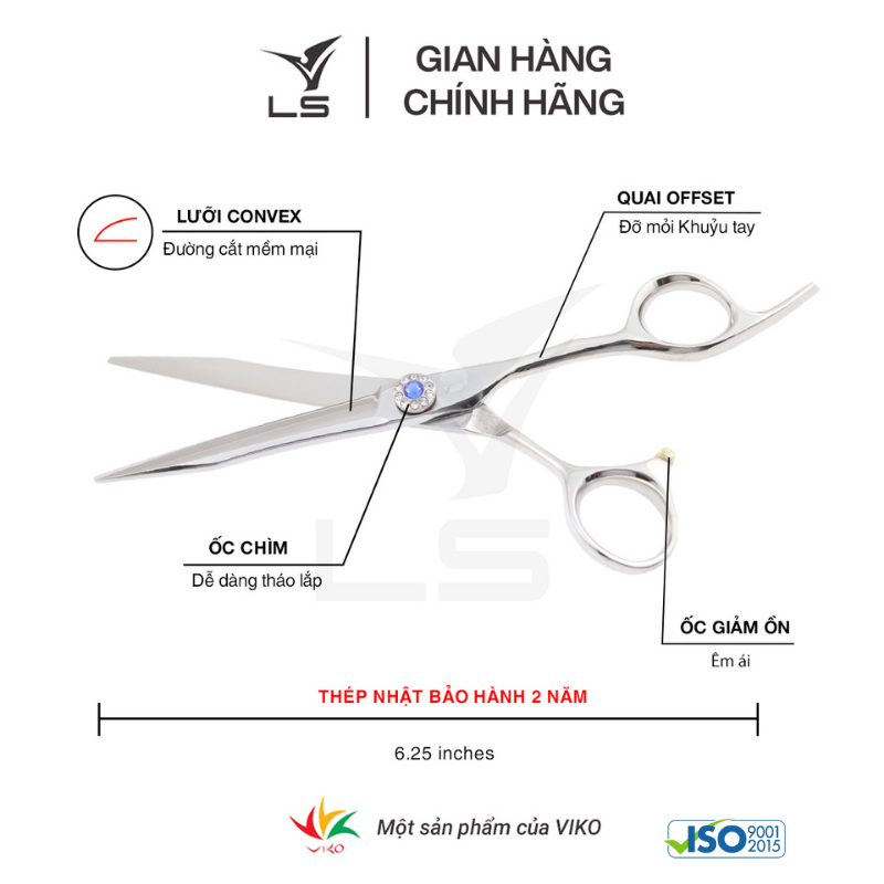 Kéo cắt tóc LS là một thương hiệu được sản xuất bởi Công ty TNHH Dụng cụ cắt Việt Hàn (Viko cutting tools Company limited) - đáp ứng đầy đủ các tiêu chuẩn quốc tế. Kéo LS thuộc dòng sản phẩm phổ thông, hướng tới đại đa số khách hàng trung bình tại các tỉnh thành trong cả nước. Với hệ thống bán hàng rộng khắp được xây dựng trong 14 năm phát triển, Kéo LS luôn nỗ lực phục vụ khách hàng một cách thuận tiện nhất. THÔNG TIN SẢN PHẨM KÉO CẮT TÓC LS FA53/6.25