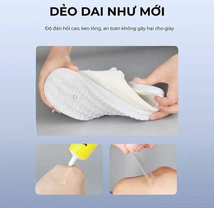 Keo dán giày siêu dính thích hợp cho các trường hợp giày dép bị bong tróc phụ kiện, hở mõm, bung đế, hoặc các sự cố hư hỏng khác mà bạn muốn tự sửa chữa tại nhà.