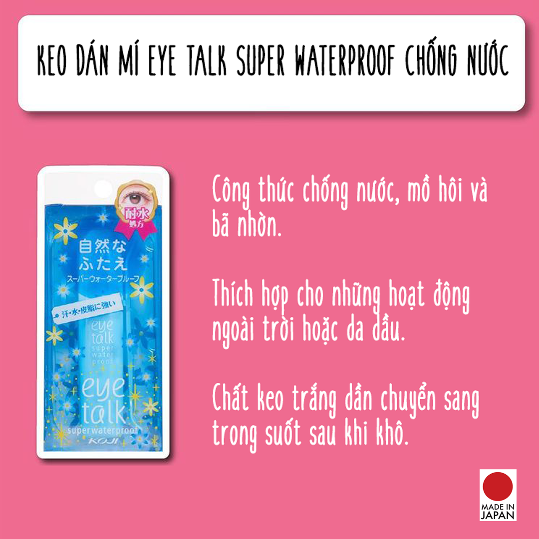 ✨Keo Dán Kích 2 Mí Nhật Bản Koji EyeTalk Super Water Proof, Siêu Chống Nước, Mồ hôi Và Bã Nhờn, Khi Khô Trong Suốt, Dưỡng Ẩm, Chống Lão Hóa, Nhanh Khô