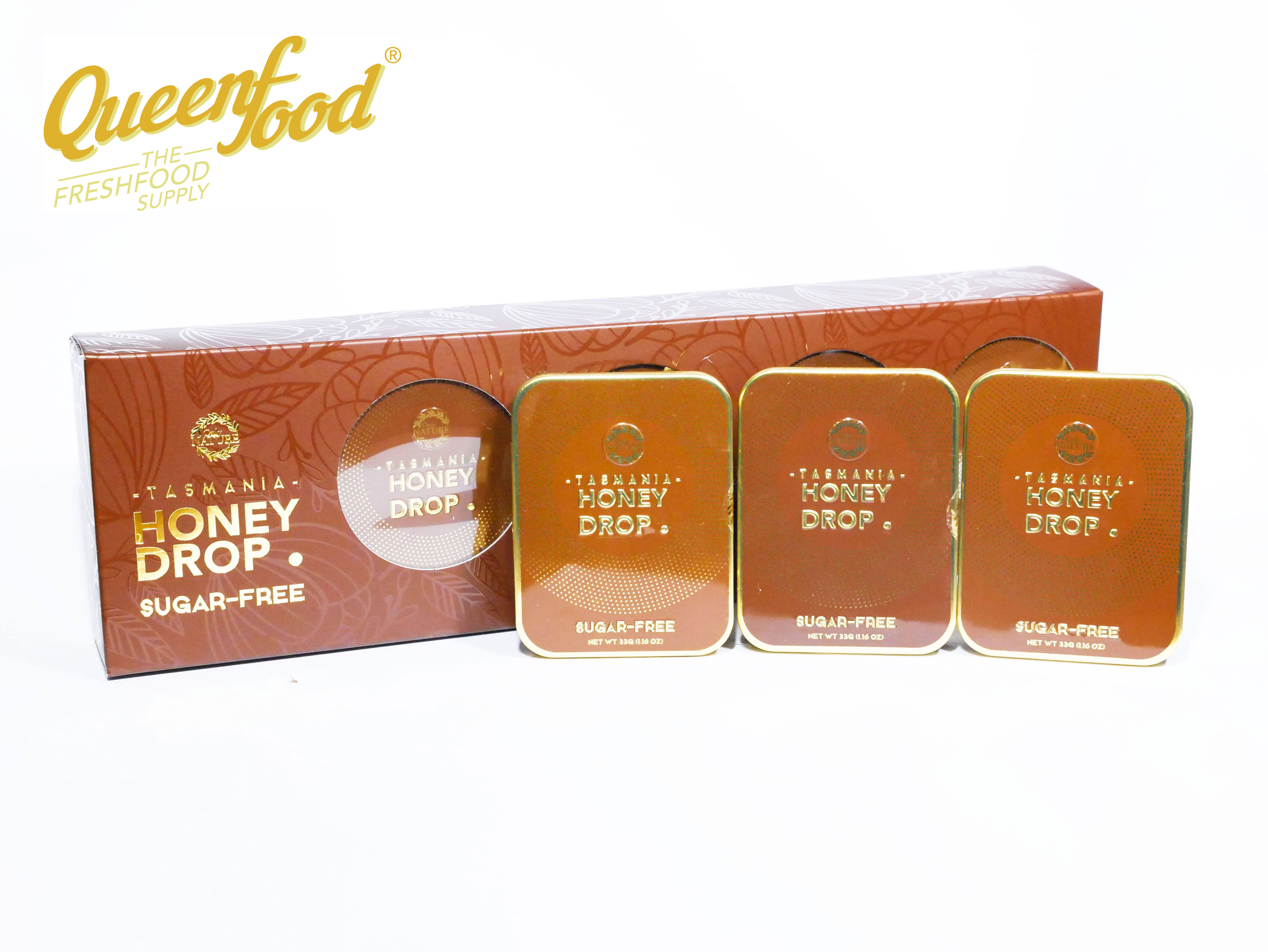 ✨Kẹo Sả Nhân Mật Ong Queenfood Honey Drop Leatherwood Không Đường 33gr Hộp 10 viên