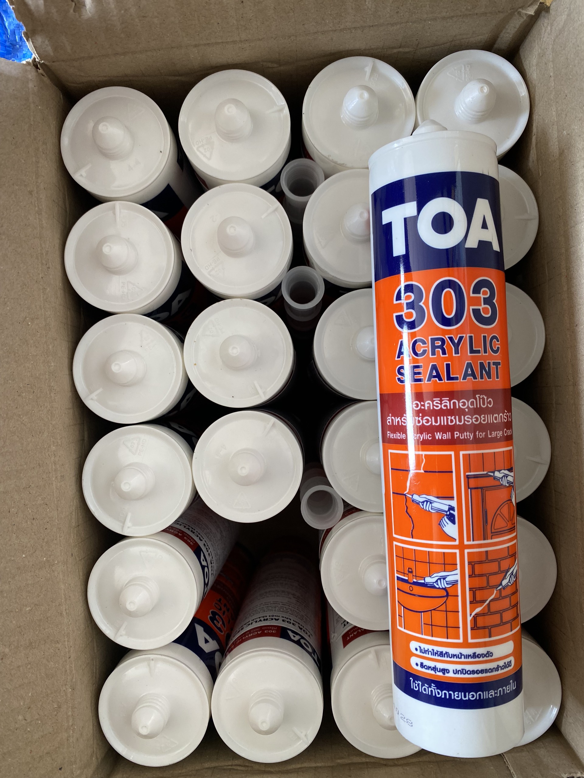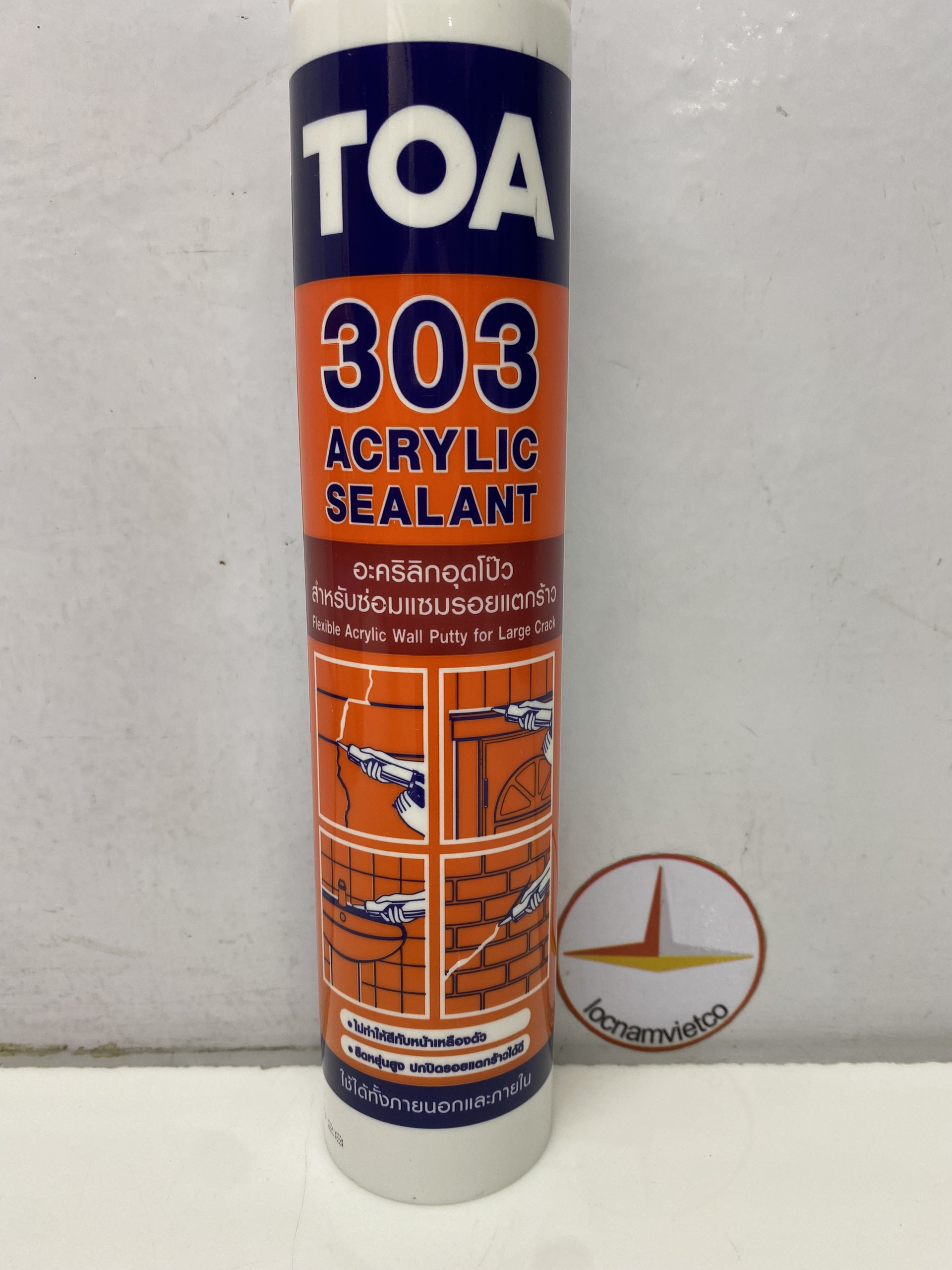 Toa 303 Acrylic sealant được sử dụng chủ yếu trám trét kết dính cho các khe hở, ke nối thi công trên kính , nhựa gỗ, gạch, bê tông, khung cửa, Cửa sổ, sửa chữa các vết nứt trên tường hồ vữa.