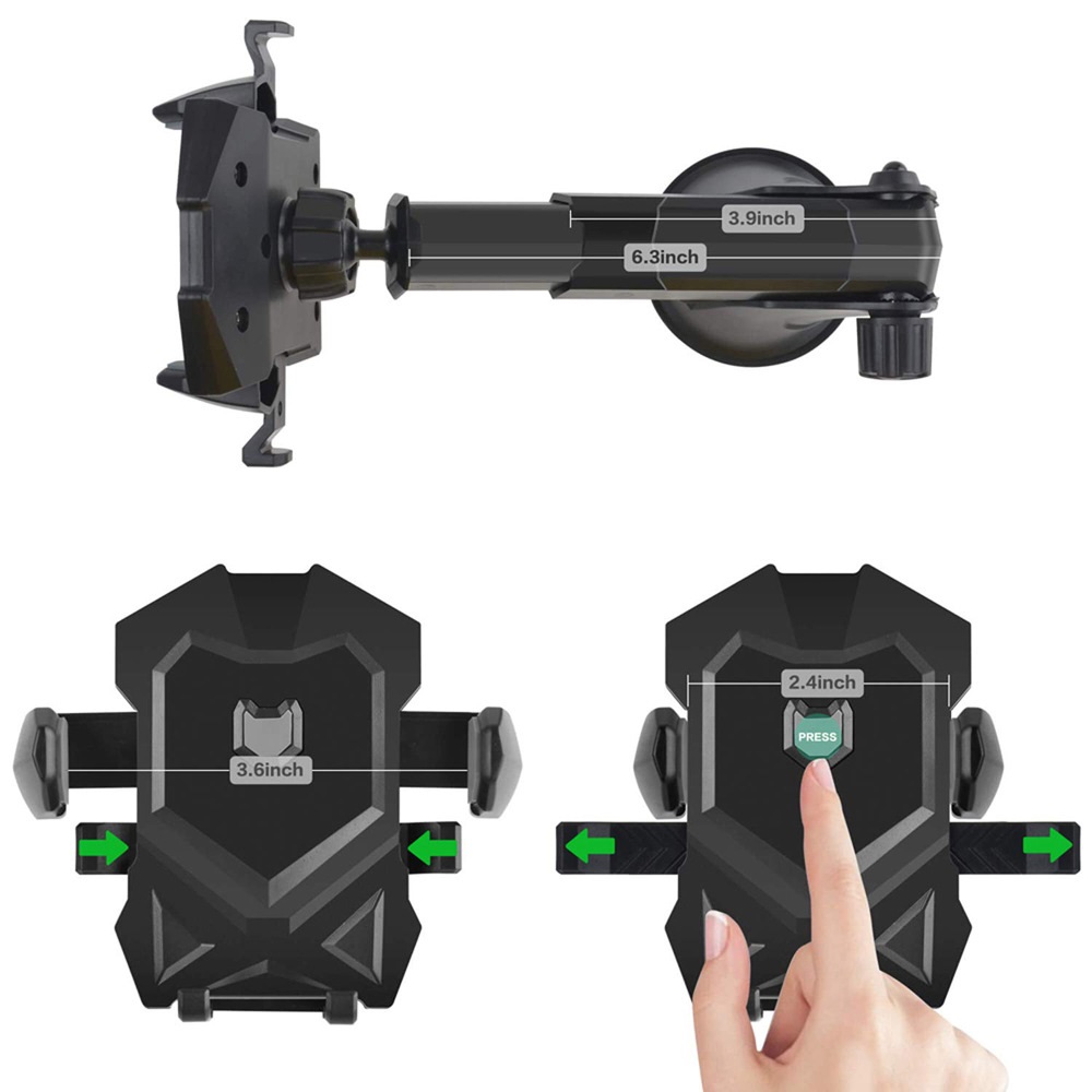 Thông tin sản phẩm: - Có mút hít kính và dính taplo, hay gắn vào mặt bàn, - Hỗ trợ xoay 360 độ - Cổ dài có thể thu gọn được kẹp - Lẫy giữ