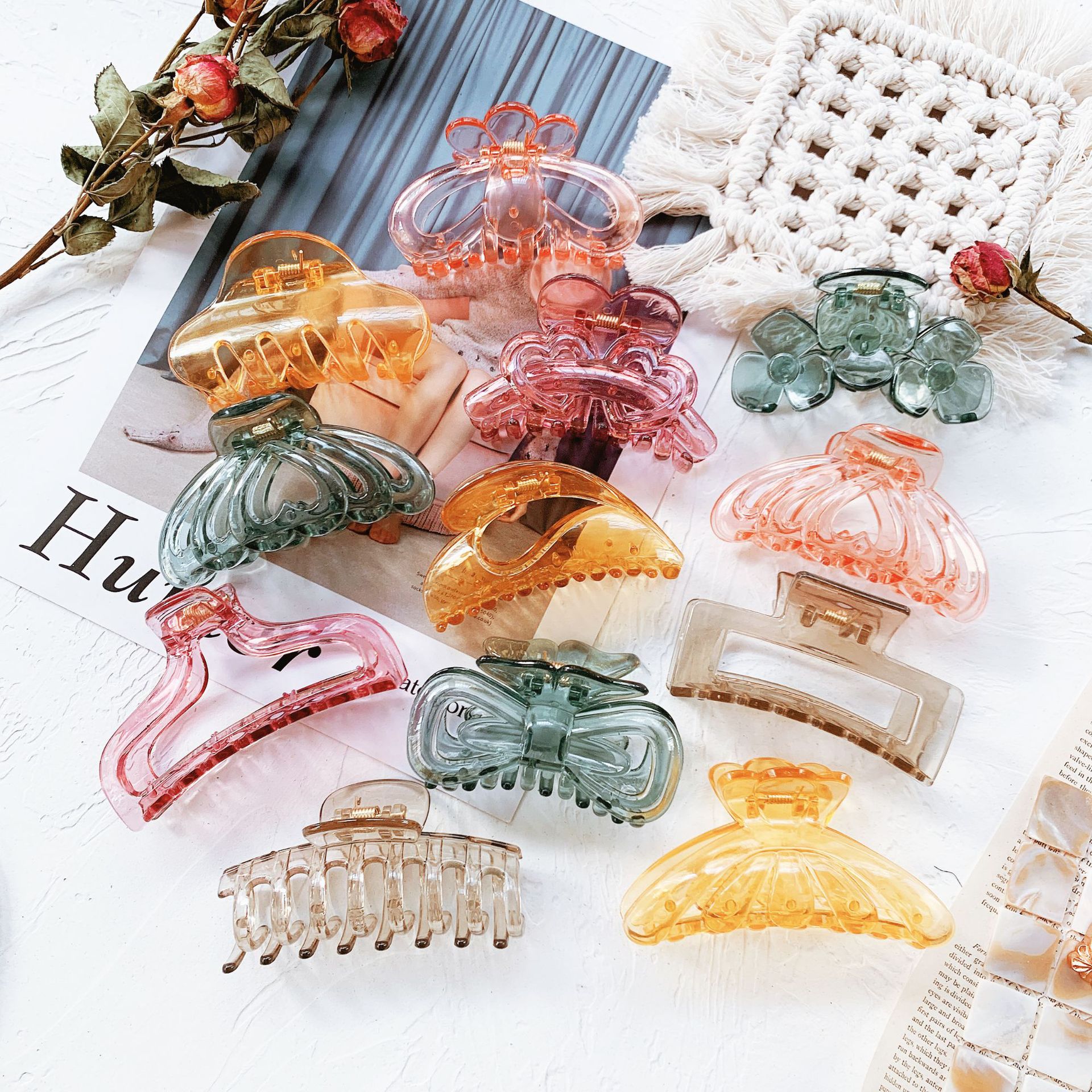 Kẹp Tóc Càng Cua Nhựa Trắng Kem Loại To Jussy Fashion Kiểu Cào Tóc Nhiều Mẩu Vinatge Hàn Quốc