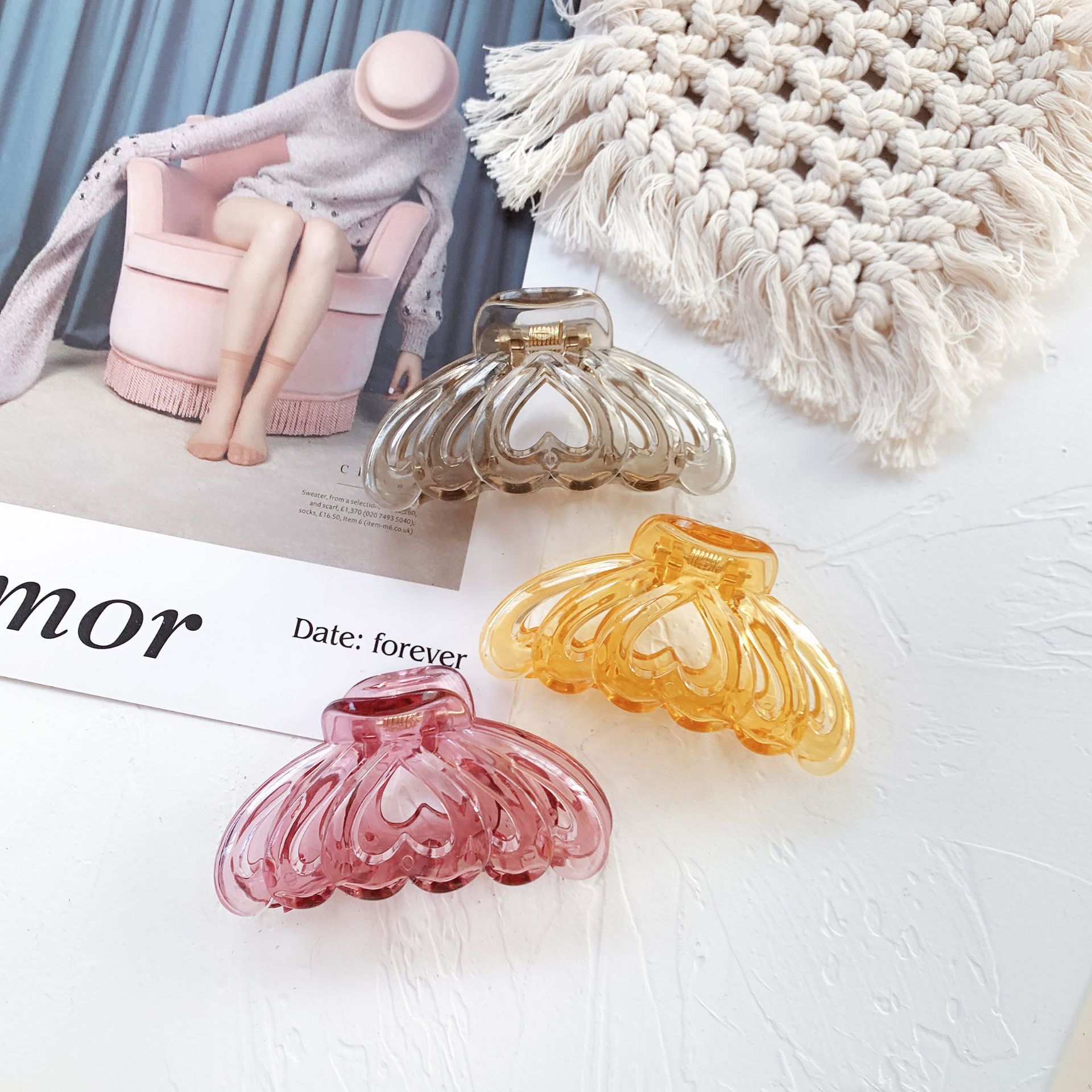 ✨Kẹp tóc càng hình tim nhựa trong dễ thương KAH181 và các loại khác giao màu ngẫu nhiên