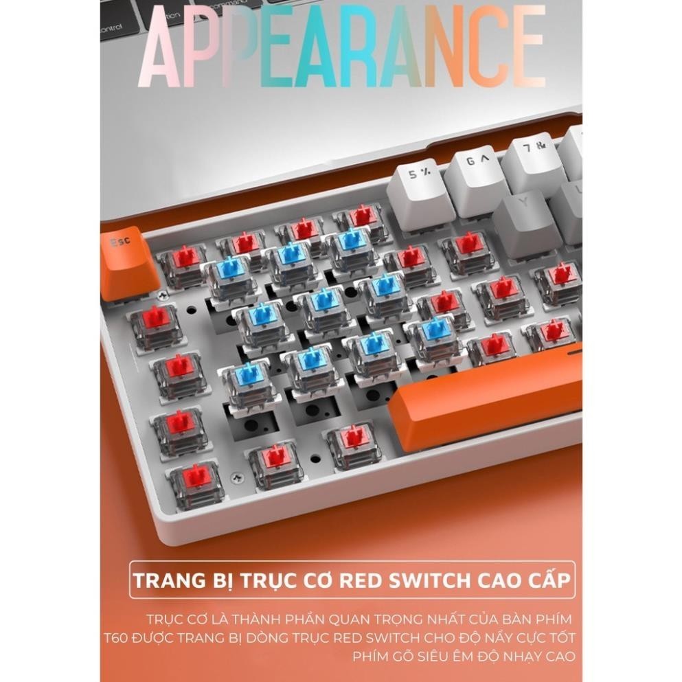 Keyboard Cơ Mini T-Wolf T60 , Kết Nối Typec - Usb , Led Rgb ) Chính Hãng Phim Cơ