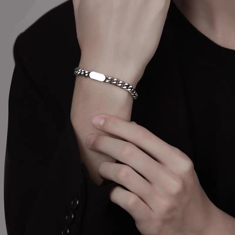 ✨【Khắc tên ghi chú】Dây chuyền nam nữ mặt trơn, Vòng tay nam nữ mặt trơn titan phong cách