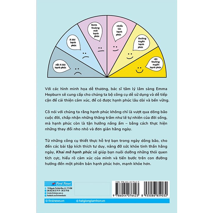 Với các hình minh họa dễ thương, bác sĩ tâm lý lâm sàng Emma Hepburn sẽ cung cấp cho chúng ta bộ công cụ dễ sử dụng và dễ tiếp cận để cải thiện cảm xúc, để có được hạnh phúc lâu dài và bền vững.