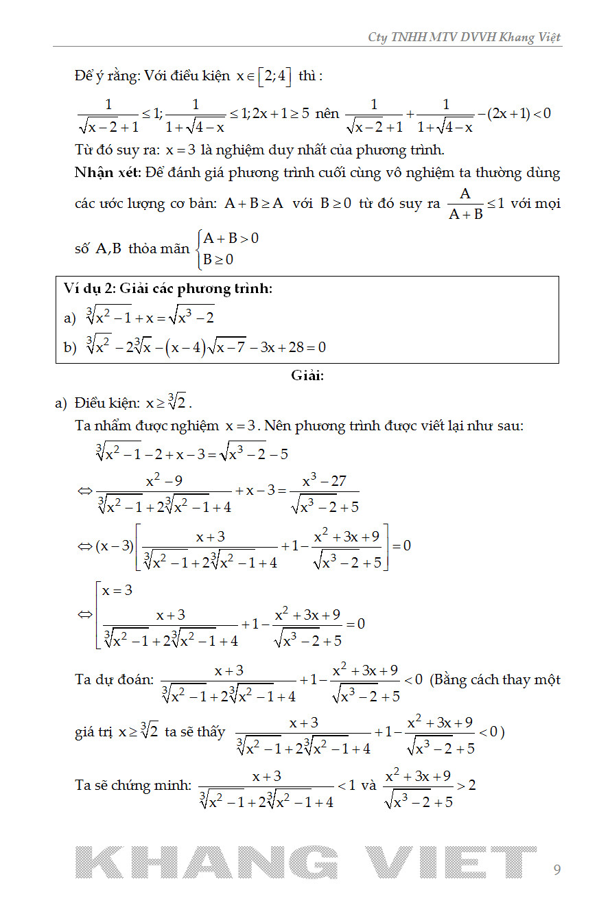 Vấn đề phương trình, bất phương trình, hệ phương trình và bất đẳng thức luôn luôn là một câu hỏi khó trong các kỳ thi THPT Quốc Gia hay tuyển sinh vào các trường Đại Học Cao Đẳng, do đó để làm được câu hỏi khó này đòi hỏi các bạn học sinh cần có một kiến thức tư duy tốt và chính vì thế chúng tôi mạnh dạng giới thiệu đến các bạn cuốn.