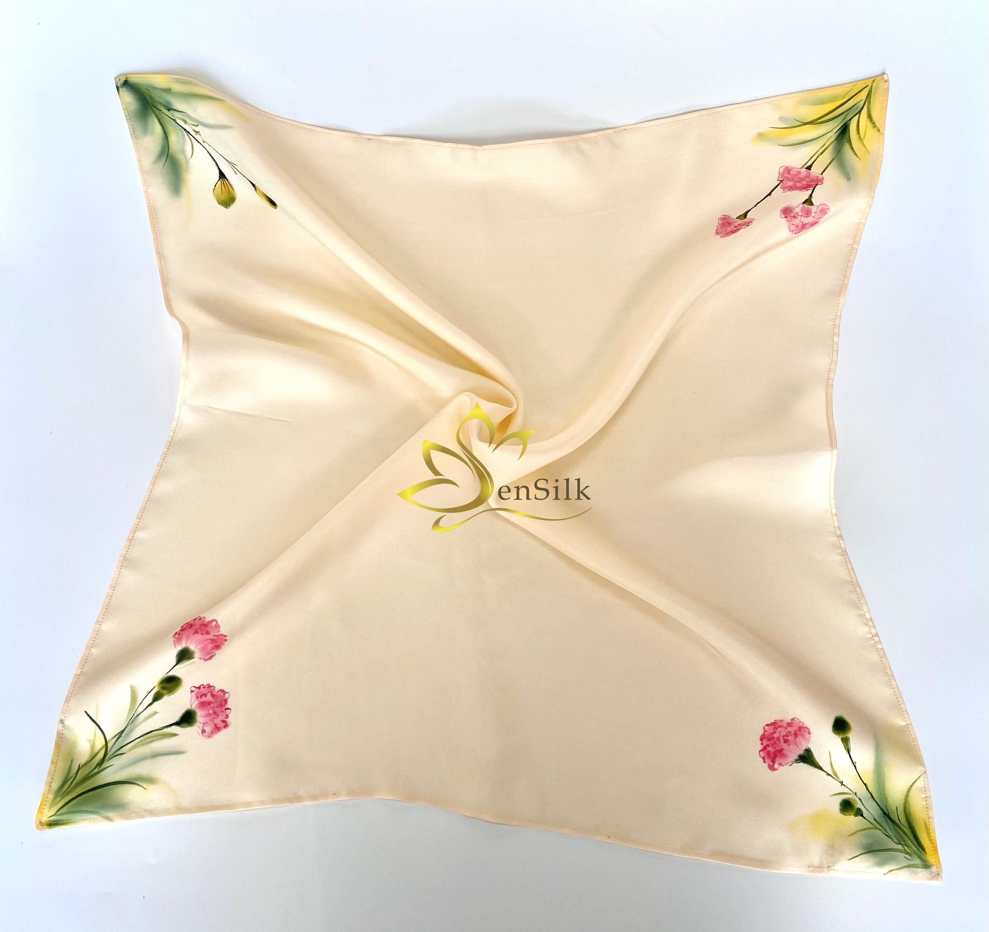 Vải Lụa Vẽ Tay SenSilk – Hoa Cẩm Chướng đỏ thể hiện sự kính trọng, biết ơn, yêu thương, chân thành. Nó là biểu tượng cho những người mẹ nhân hậu. Vì thế, hoa cẩm