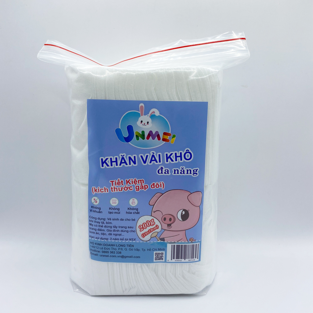 Khăn vải khô đa năng Unmei 200g- Phiên bản đổi mới Sản phẩm Khăn Khô Unmei 200g xuất hiện trong nhiều năm gần đây đã phần nào giúp đỡ các bà mẹ trong việc vệ sinh cho