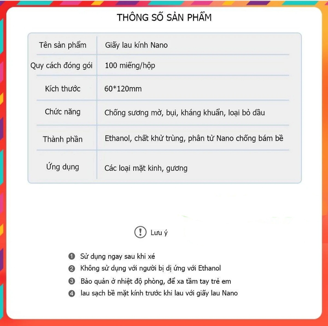 ✨khăn Lau Kính Nano Hộp 100 Miếng Giấy Lau Kính Chống Bám Hơi Nước, Vân Tay Bụi Bẩn