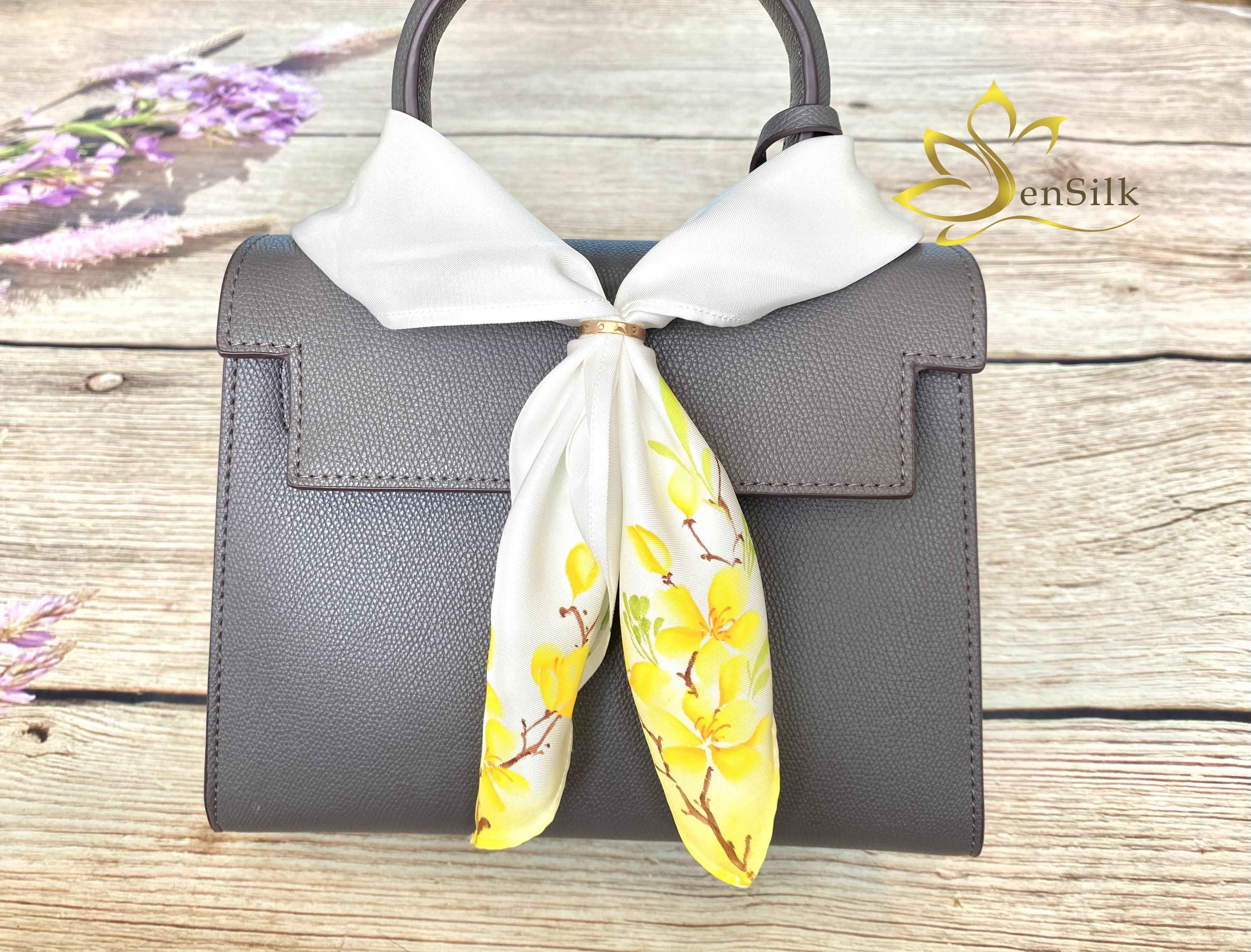 Khăn Lụa Thắt Nơ Cổ Vẽ Tay Mai Vàng SenSilk