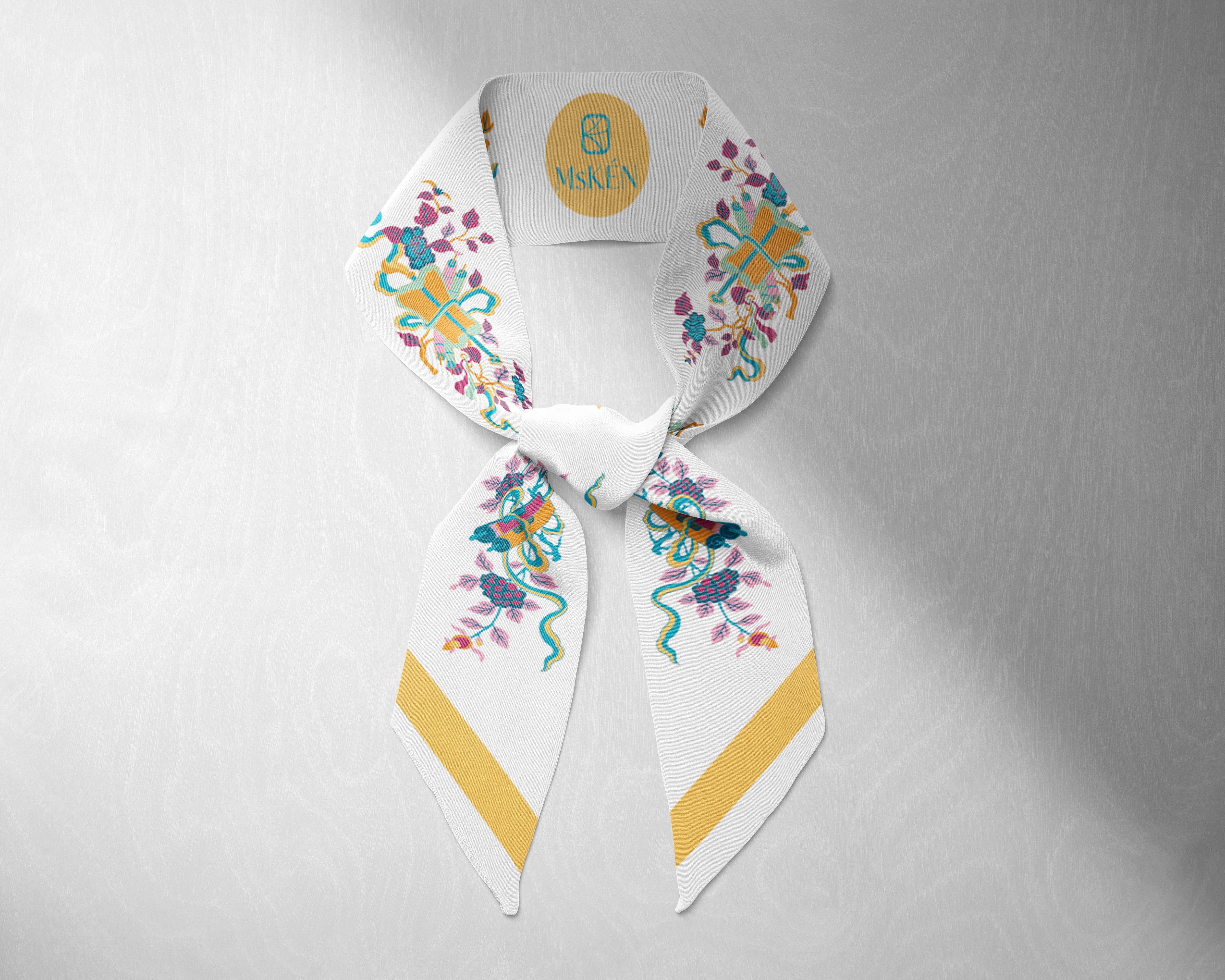Được lấy ý tưởng từ tám bảo vật (Bát Bửu) trong Nho Giáo ở thời nhà Nguyễn, khăn lụa tơ tằm twilly “TUỆ” tôn vinh trí tuệ và phẩm chất nho nhã của các bậc hiền nhân thời xưa.
