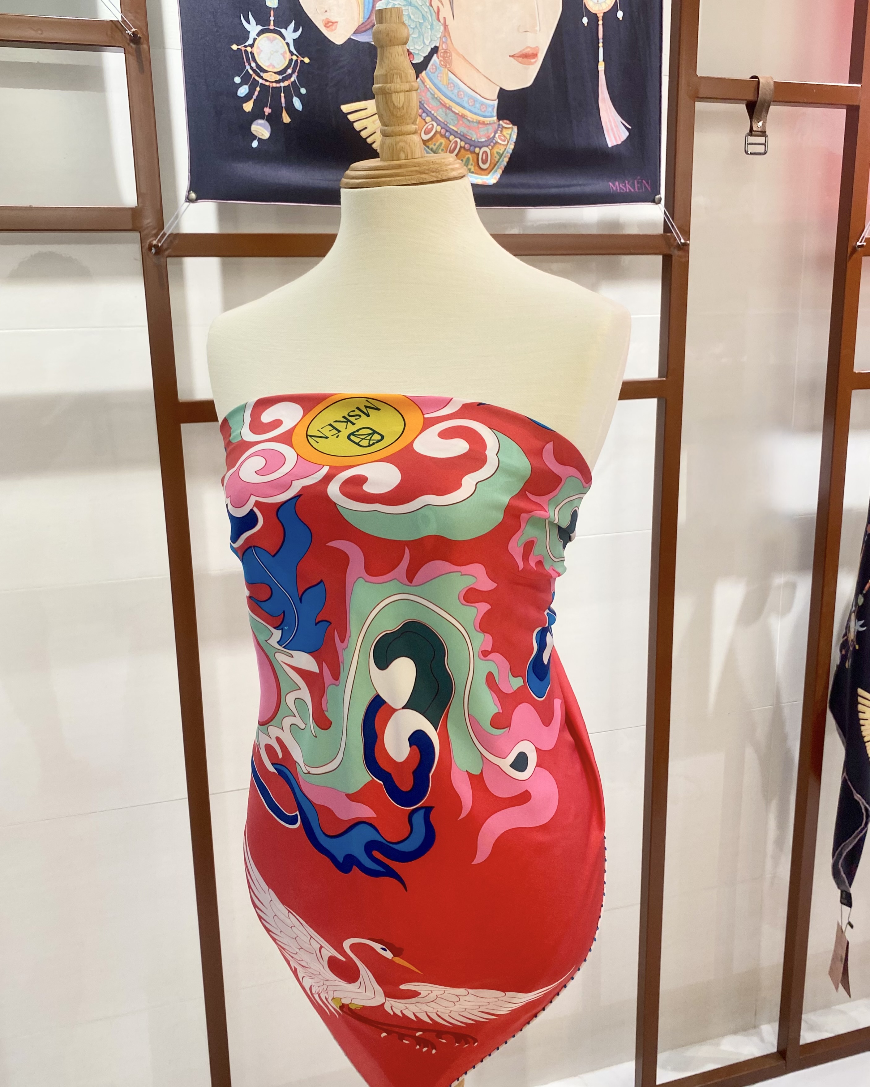 CÂU CHUYỆN Thiết kế “Loan” được lấy cảm hứng từ ổ Loan – loài chim thần thoại được coi là biểu tượng cho phụ nữ hoàng tộc – và loài chim Hạc. Trong văn hóa phong kiến Việt Nam, Loan được cho là loài cưỡi gió, nó bay rất cao và múa rất đẹp, âm thanh của chúng phát ra như âm thanh nhạc ngũ cung. Hơn nữa, vì là loài chim đại diện cho đức hạnh, thái bình, và tài sắc mà Loan đã trở thành biểu trưng của hoàng hậu, công chúa, vương phi, cùng những cô gái cao quý. Trong văn hóa phương Đông, chim Hạc được coi là một loài chim quý giá, nó biểu thị sự thanh cao và tinh túy của người quân tử. Chim Hạc trở thành biểu tượng cho sự mạnh mẽ và ưu tú, đại diện cho sự trường thọ, minh mẫn và trí tuệ của con người sau nhiều năm bồi đắp. Thiết kế với bốn con Hạc xung quanh ổ Phượng Hoàng ngụ ý về sự bảo vệ và che chở cho các cô gái của người quân tử. Điều này tượng trưng cho tình yêu và sự bao bọc an lành từ những người đàn ông cao sang đến với những người phụ nữ của mình. Do đó, hình ảnh ổ Loan và chim hạc trên khăn không chỉ là một yếu tố trang trí, mà còn mang ý nghĩa sâu sắc về việc nâng niu những cảm xúc và lan tỏa yêu thương đến những người mình trân quý. Thông qua thiết kế này, MsKÉN mong muốn tạo ra một không gian sống tích cực và yêu thương, khuyến khích mọi người giữ vững niềm tin vào cuộc sống và trân trọng những mối quan hệ quý giá. Những kiểu sử dụng khăn lụa phổ biến hiện nay:
