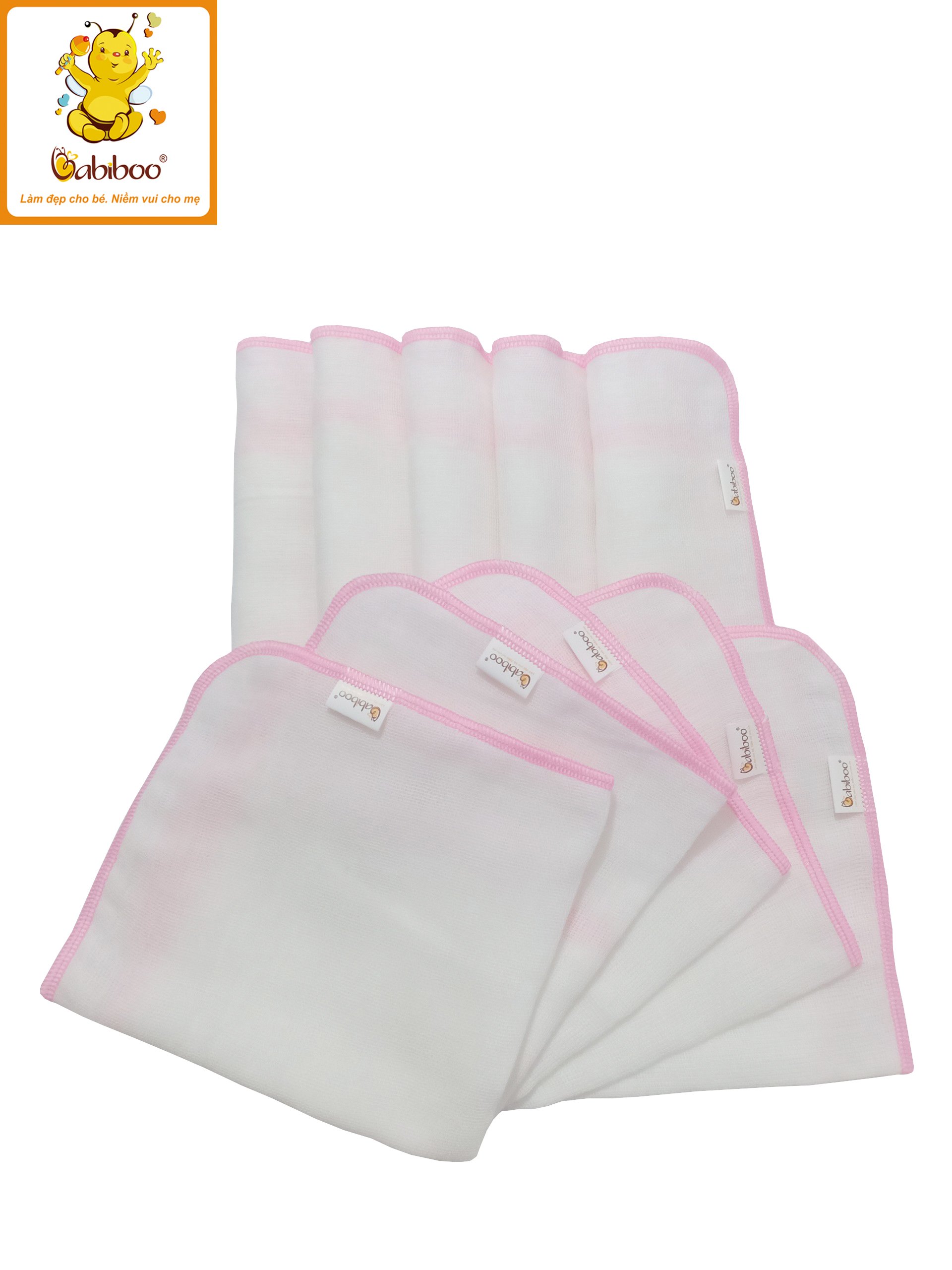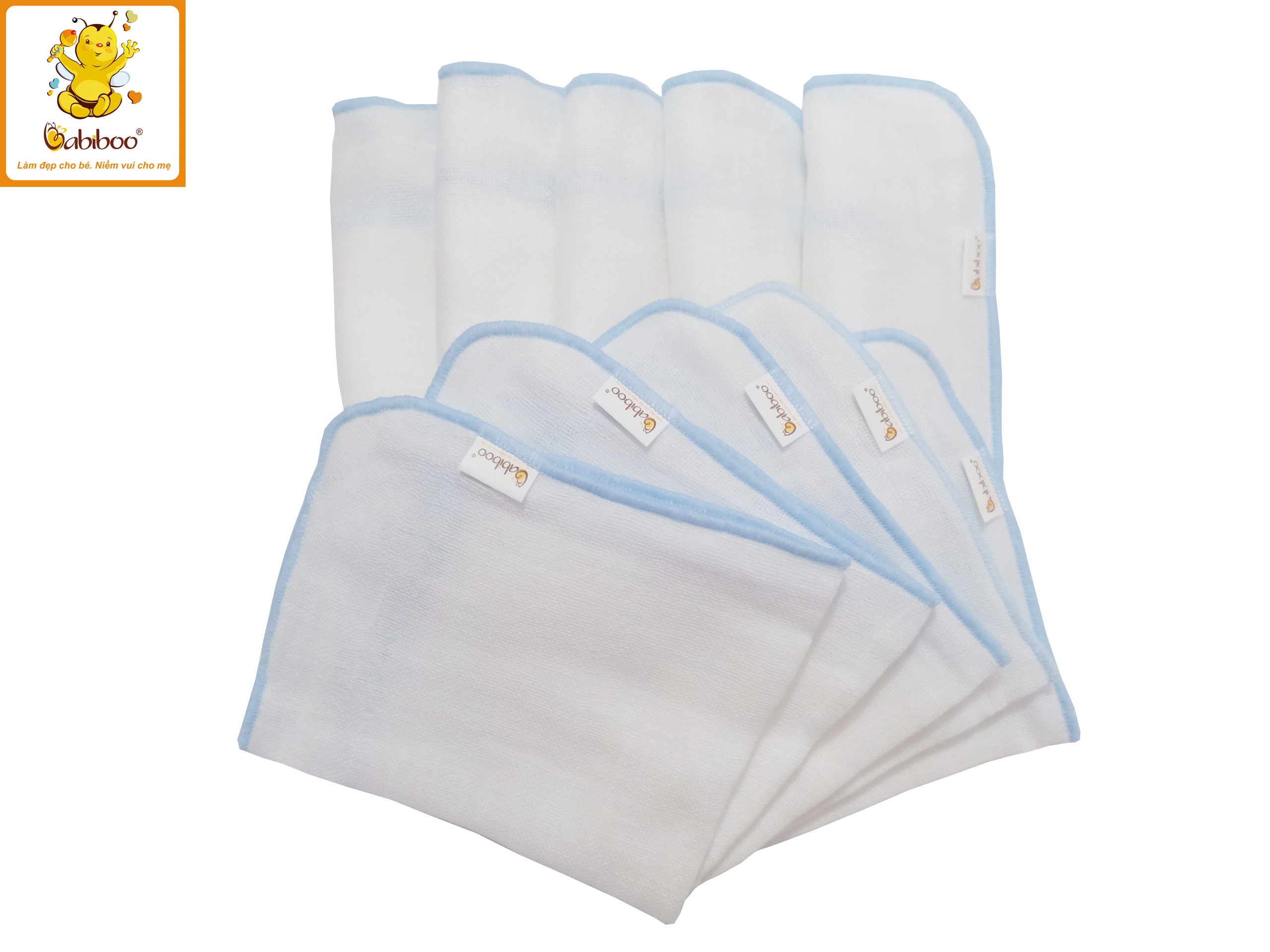 -Bộ khăn sữa cho trẻ sơ sinh BABIBOO có 10 khăn/gói để mẹ dễ thay đổi khi chăm sóc bé.