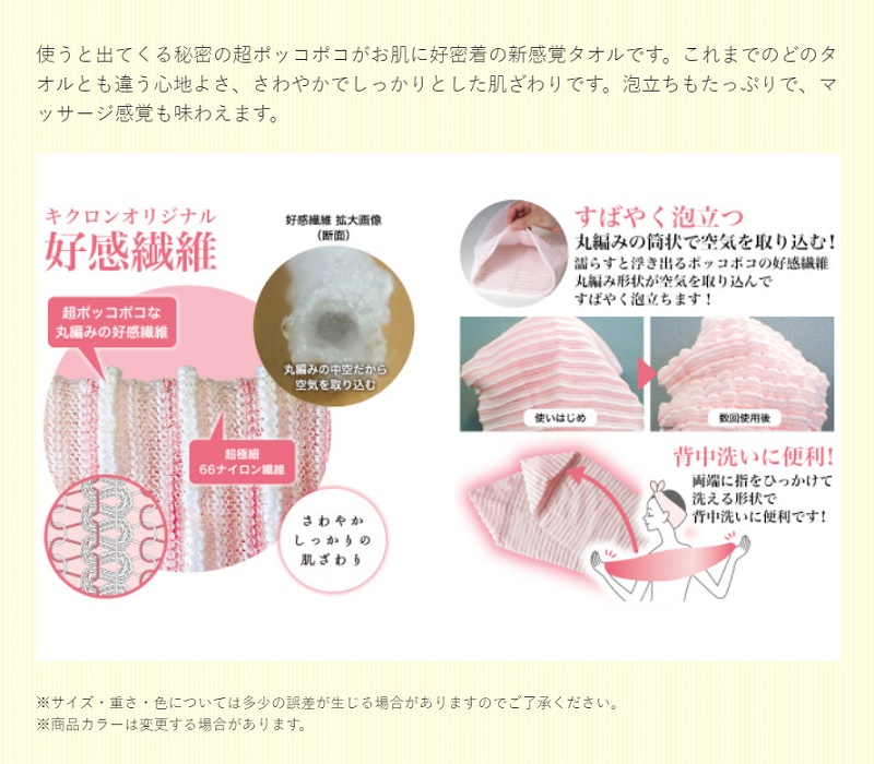 - Một chiếc khăn cho cảm giác bám dính tốt trên da với công thức tạo bọt mới Pokkopoco, tạo bọt mịn nhanh chóng.