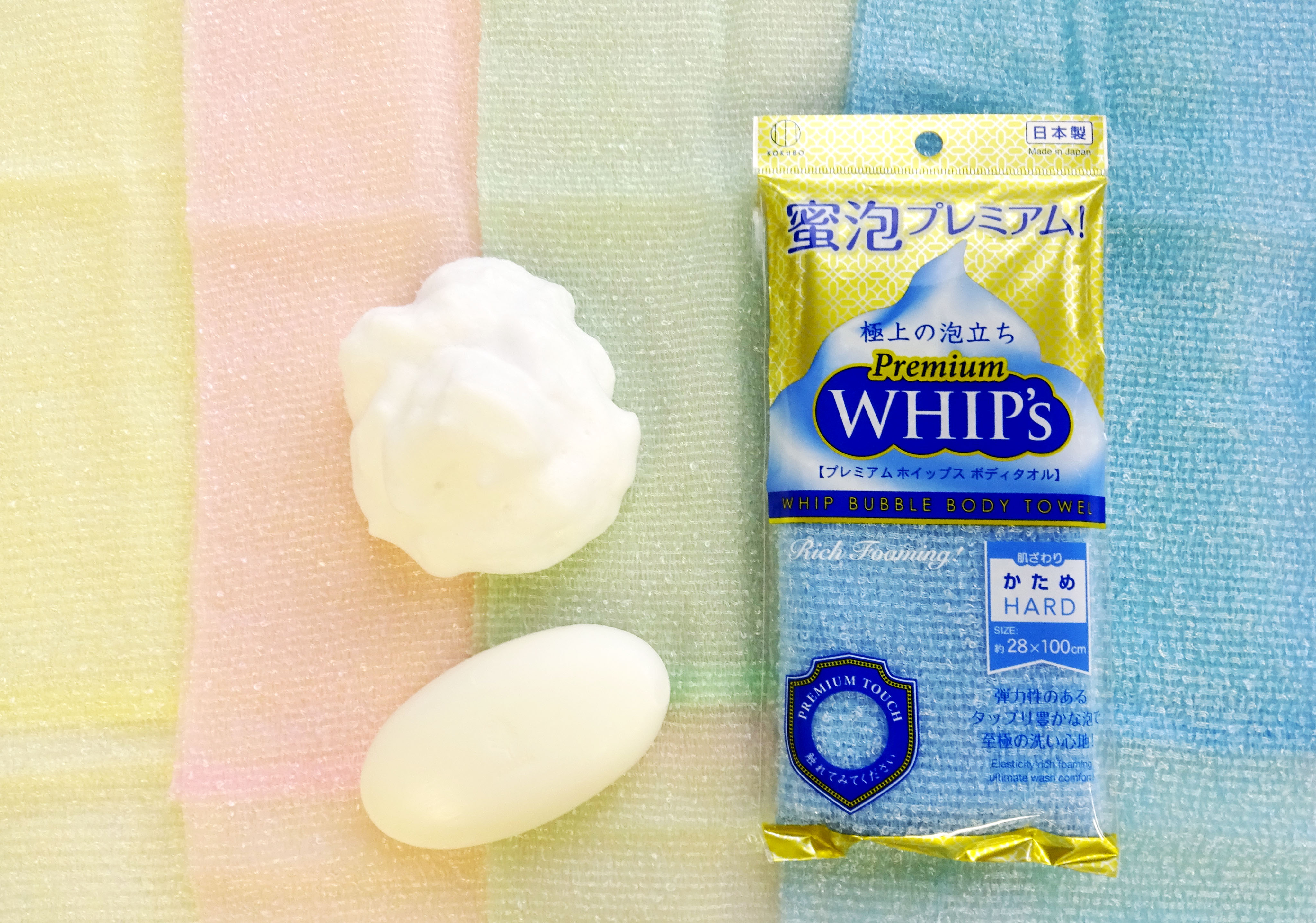 Khăn tắm tạo bọt Whip's Kokubo mềm mịn cao cấp (loại nhiều bọt) - Hàng nội địa Nhật Bản. Chất liệu/Thành phần: Nylon / Polyester mềm mịn, bông xốp với khả năng tạo bọt