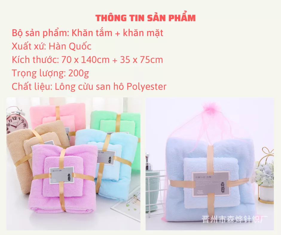 Khăn Tắm, Khăn Mặt, Combo 2 Khăn Lông Cừu Kích Thước 70cm x 140cm, 35cm x 75cm, Tiêu Chuẩn Hàn Quốc Sêu Mềm Mịn, An Toàn Cho Da - Chính hãng - Được thiết kế