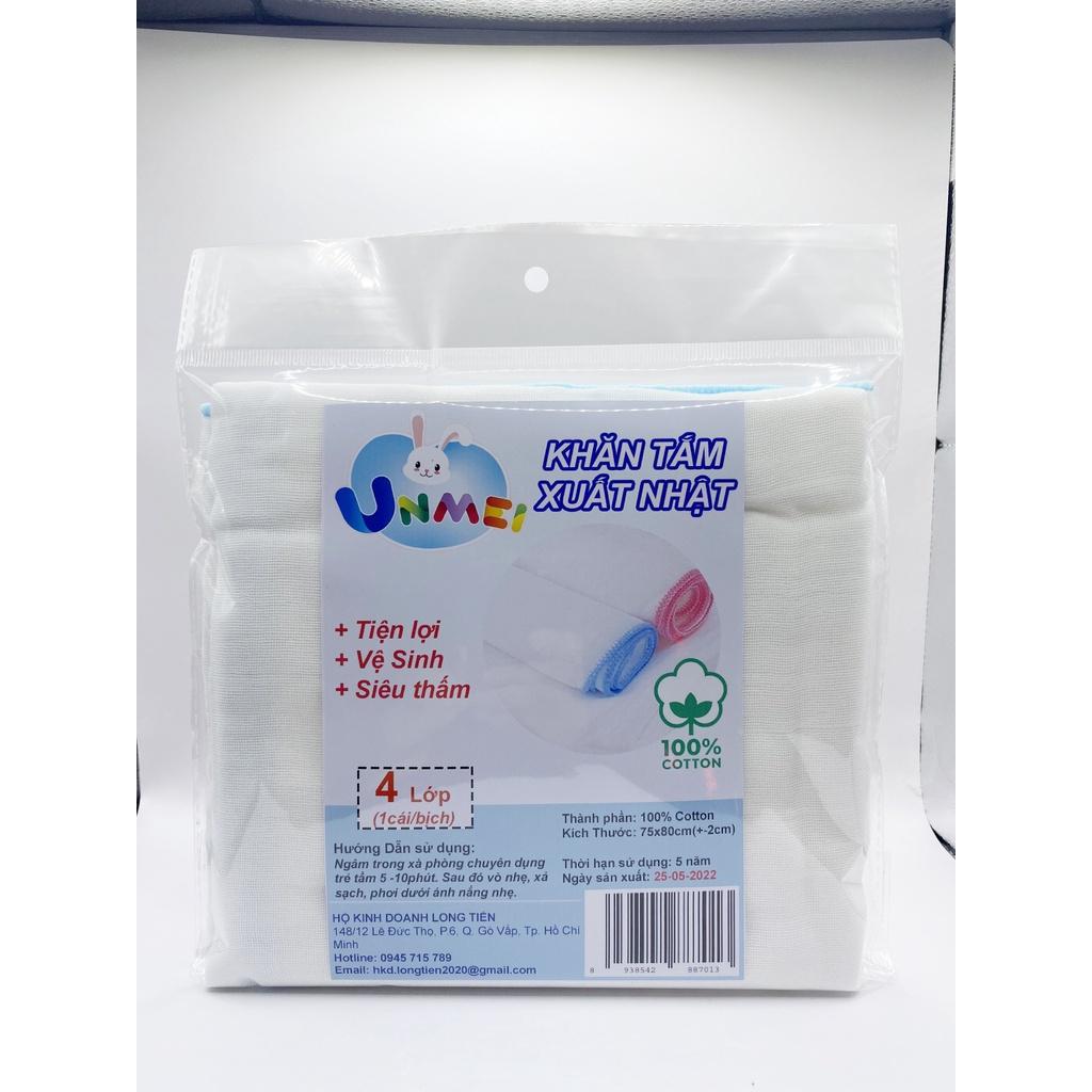 ✨Khăn Tắm Xô 4 Lớp Cao Cấp Unmei 75 x 80 cm, 100% Cotton (1 Cái/bịch)
